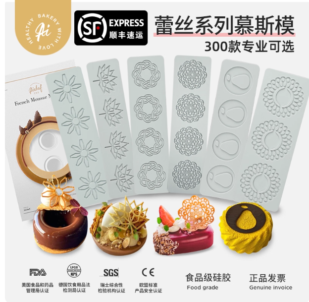 (特)分子料理蕾丝镂空装饰脆片树叶花环法式创意菜巧克力烘焙硅胶模具