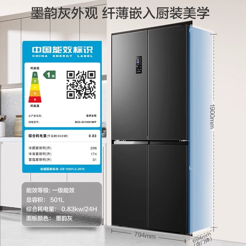 (特)容声501升十字双对开四开多门电冰箱BCD-501WD18FP