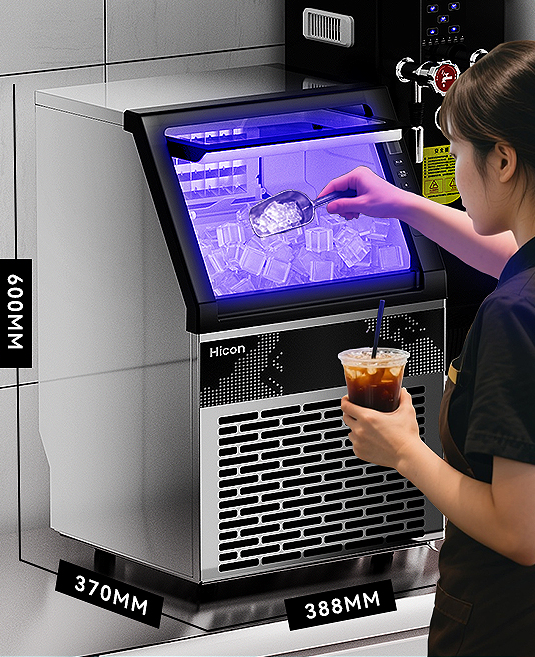 (特)Hicon惠康制冰机商用大型70/100kg大容量小型摆摊全自动方冰块机