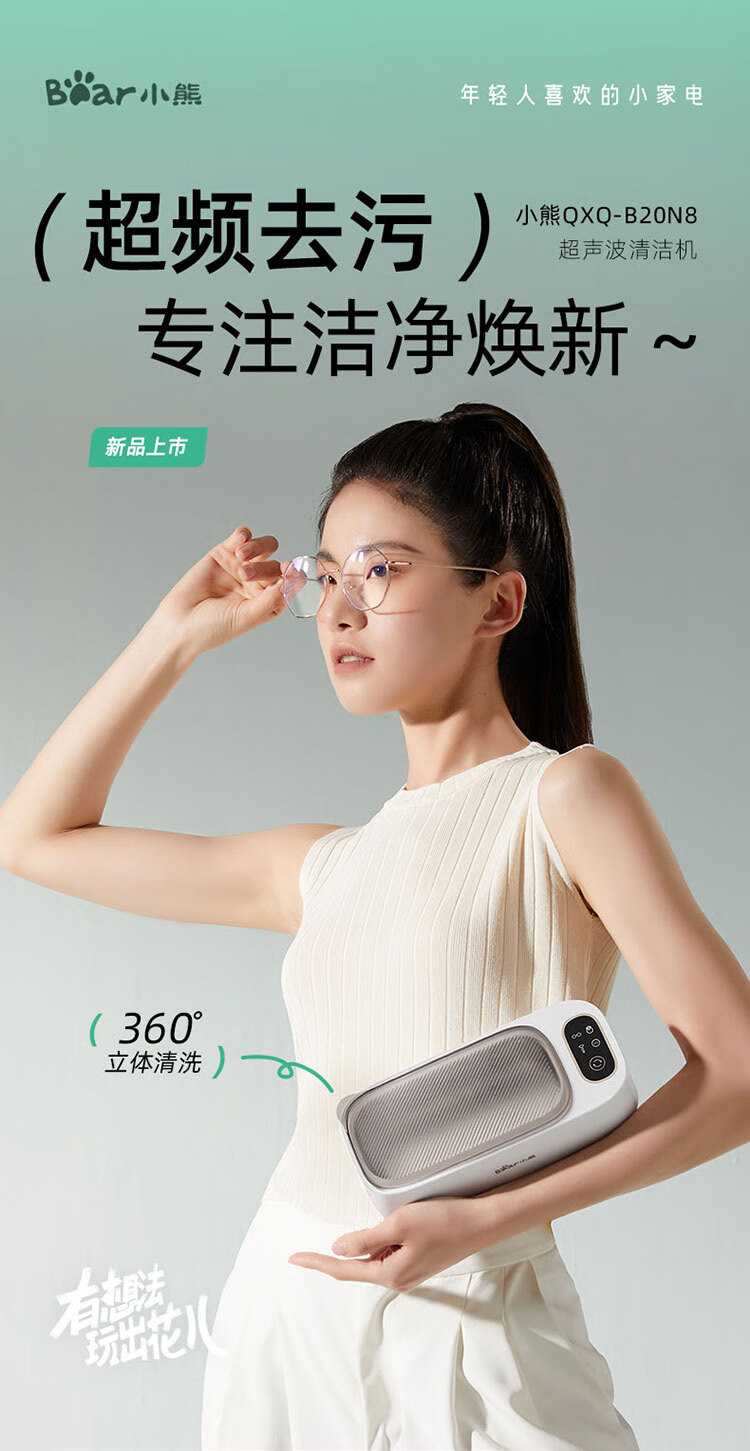 (特)小熊超声波清洗机洗眼镜机家用首饰牙套隐形眼镜自动清洁神器眼睛