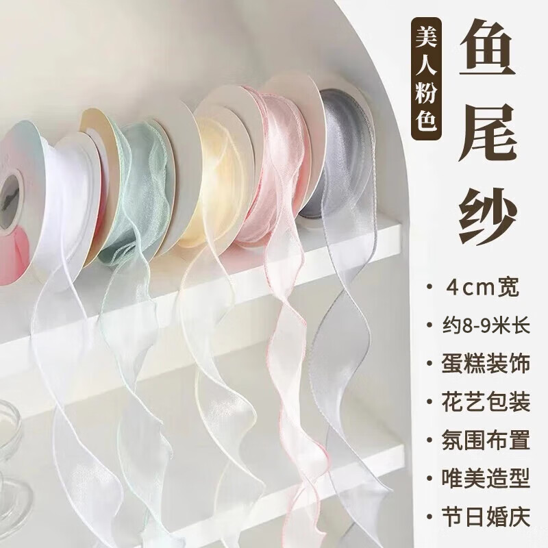 (特)东之天地 鱼尾纱丝带礼物包装带蝴蝶结装饰缎带鲜花束蛋糕围边包材生日 鱼尾纱丝带