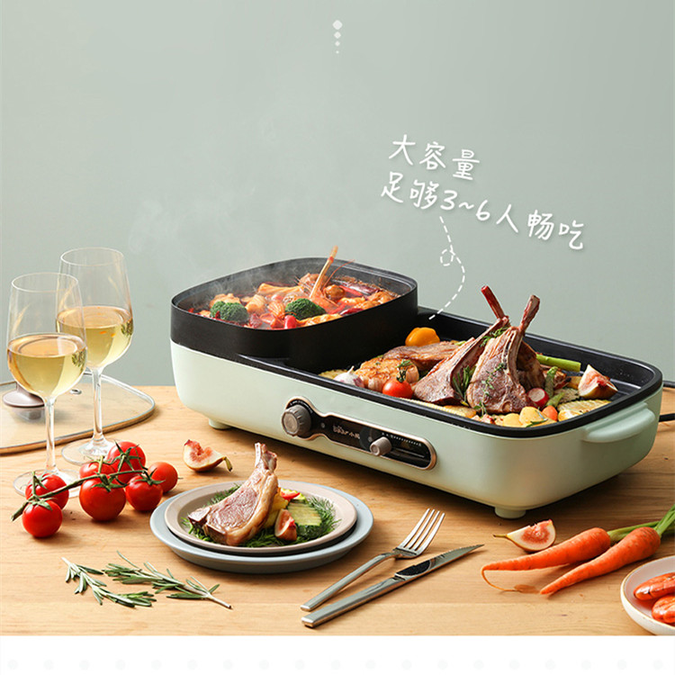 (特)小熊(Bear)烤肉锅 烧烤炉 烤涮一体两用锅电烤盘烤肉机家用烤肉盘多功能电火锅电烤炉DKL-C15G1