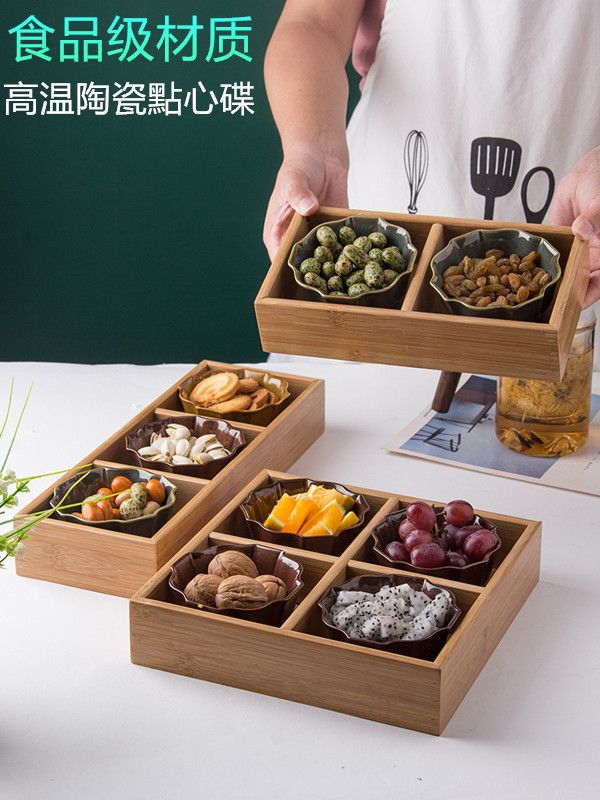 九宫格水果托盘竹四盘坚果收纳盒分格零食围炉煮茶的盘子干果点心