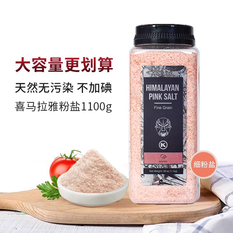 (特)SOEOS喜马拉雅进口玫瑰盐无加碘细盐矿盐西餐食用盐1.1kg