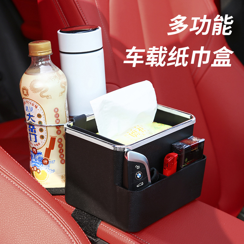 爆款车载抽纸盒汽车夹缝收纳箱抽纸储物水杯扶手箱