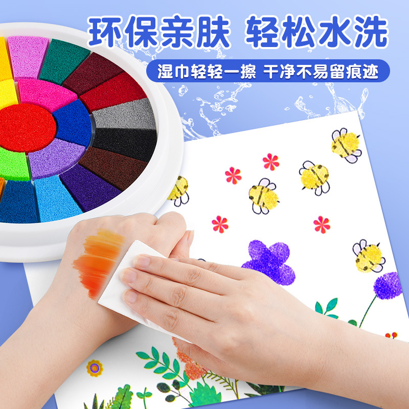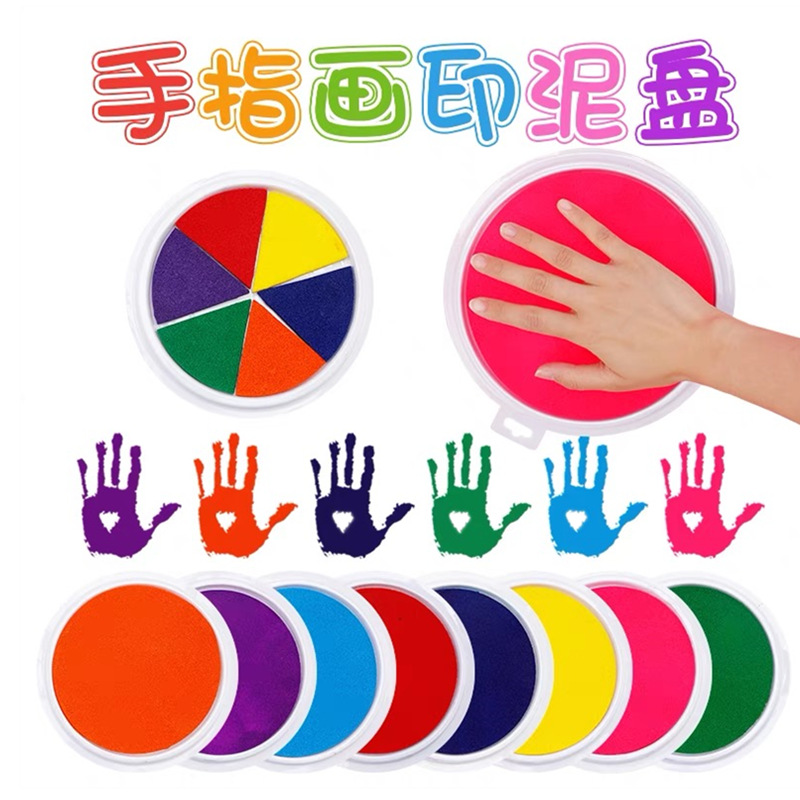 跨境幼儿园手指手掌画颜料彩色印泥印台大号手掌印泥无毒可水洗