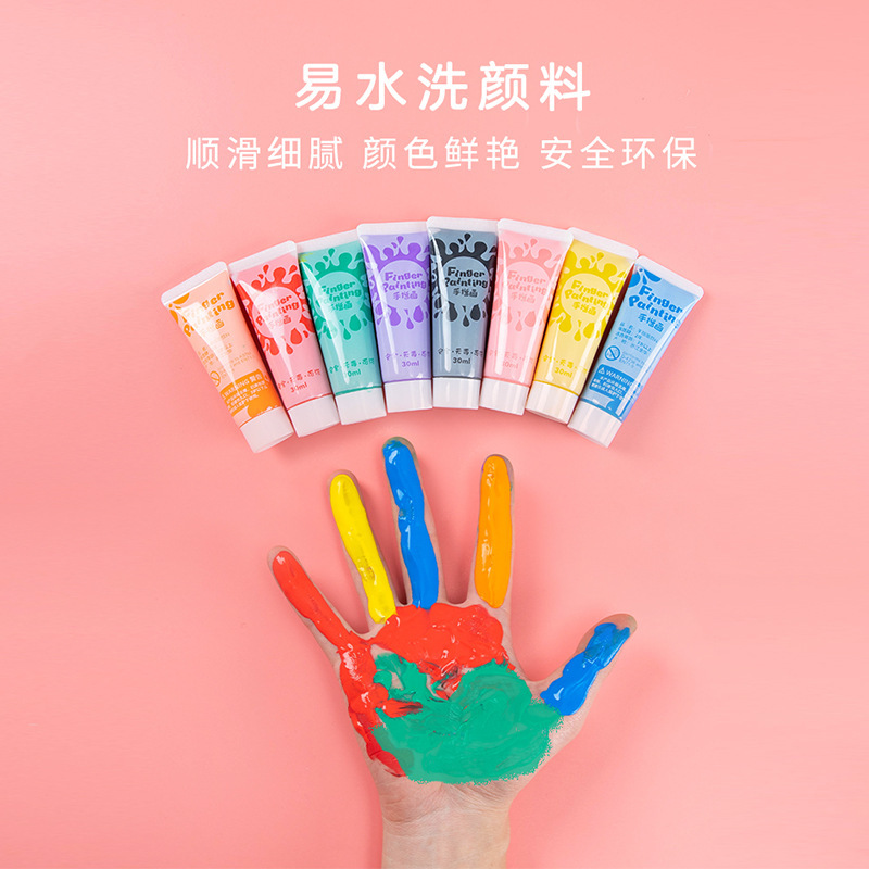 可水洗儿童手指画颜料套装12色30ml美术绘画水粉颜料创意涂鸦diy