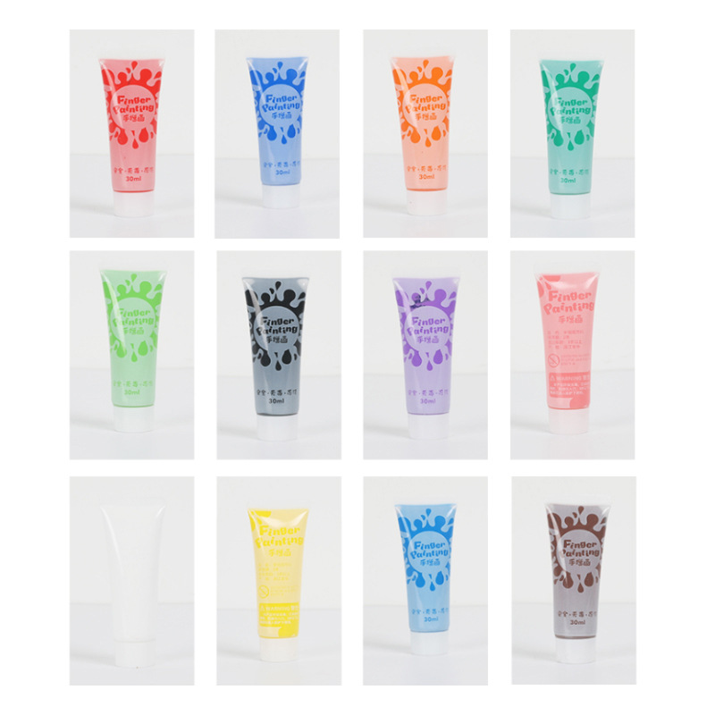 儿童手指画颜料可水洗幼儿100ml袋装挤压式水粉画12色手指画颜料