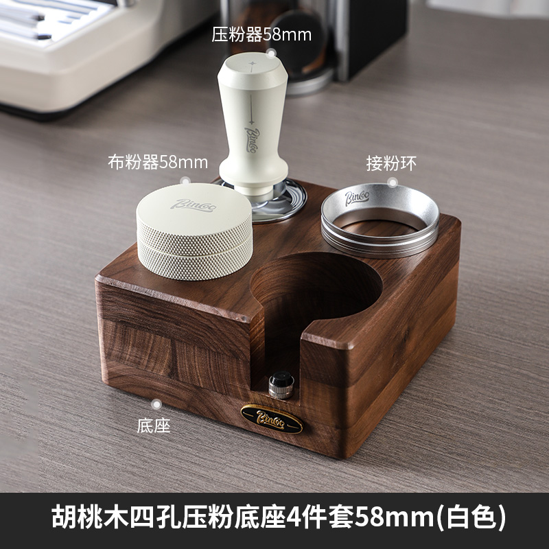 (特)Bincoo胡桃木四孔咖啡压粉底座意式布粉压粉器具工具58mm套装