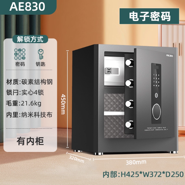 (特)得力卓岳指纹密码保险柜(南京江韵项目专拍,拍前请咨询客服)