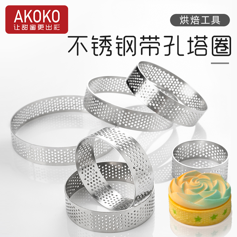 (特)AKOKO不锈钢圆形带孔挞圈模烘焙法式饼底挞皮塔壳透气圆型圈模具