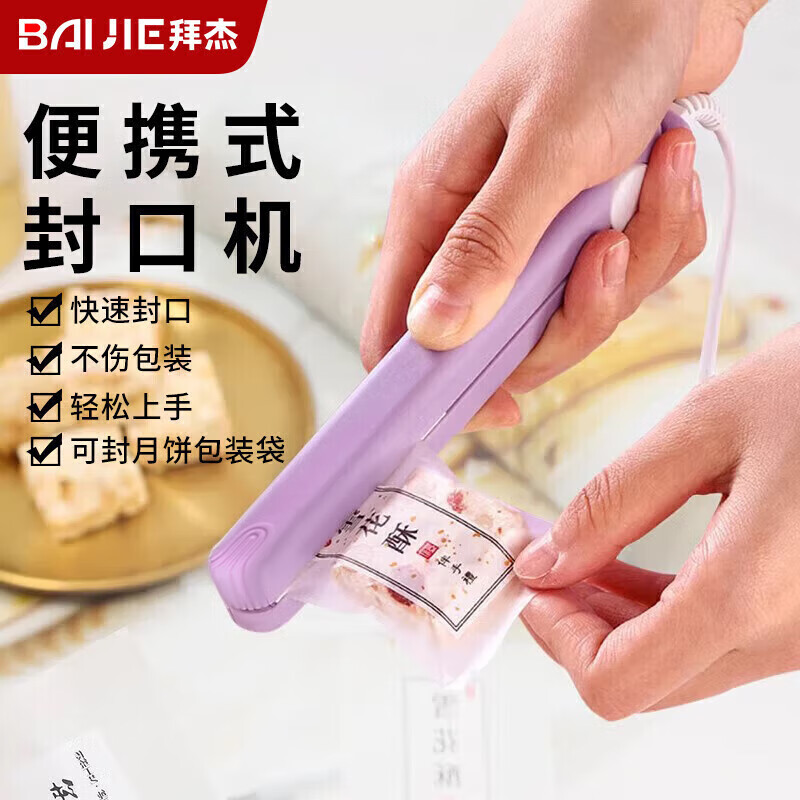 (特)拜杰封口机家用迷你封口机零食封口器塑封机热封机食品密封封口神器月饼包装袋封口机