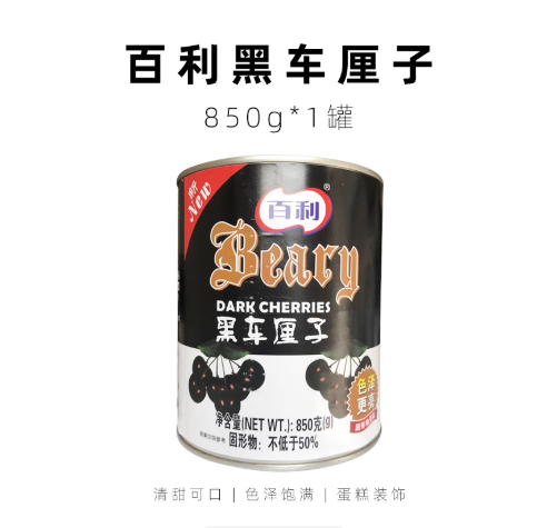 (特)百利黑车厘子850g 无枝黑樱桃罐头黑森林水果蛋糕装饰 烘培原料材