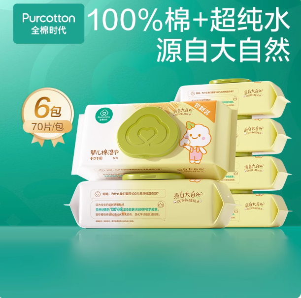 (特)全棉时代婴儿湿巾纯棉新生儿宝宝手口湿巾家庭装湿纸巾70抽