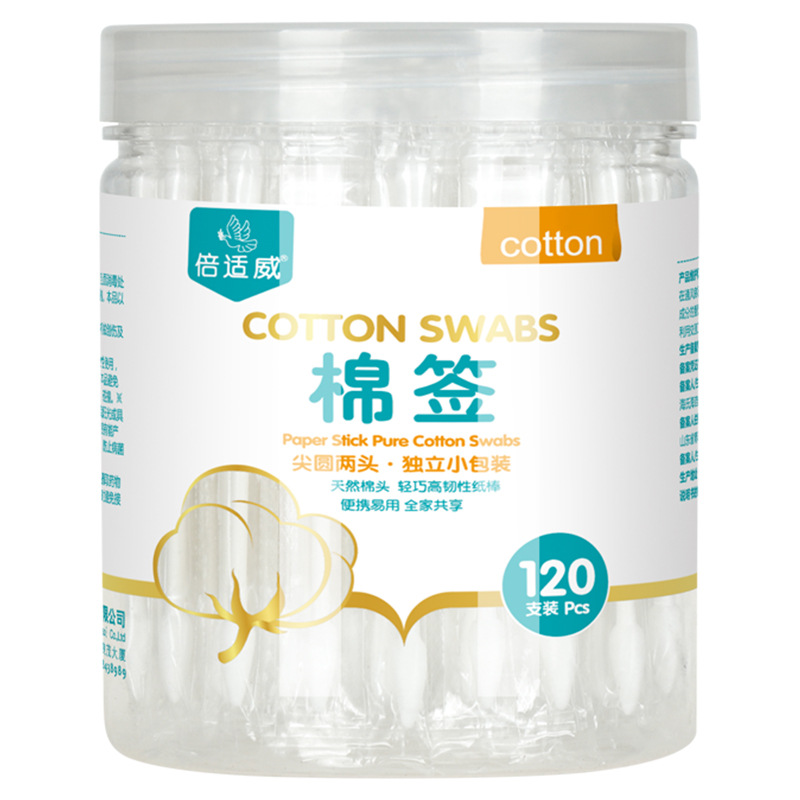 (特)海氏海诺棉签双头一次性独立包装掏耳朵化妆旅行便携式棉棒120支/罐