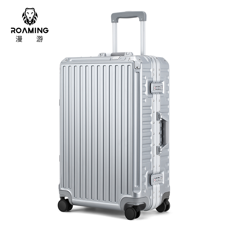 (特)漫游铝框行李箱男轻音万向轮旅行箱包大拉杆箱登机箱子小型密码箱女 太空银 20英寸-美国拓博尔轻音轮