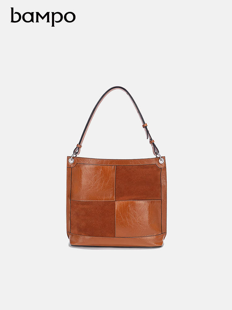 (特)BAMPO半坡真皮斜挎包女专柜同款小众原创设计头层牛皮单肩托特包