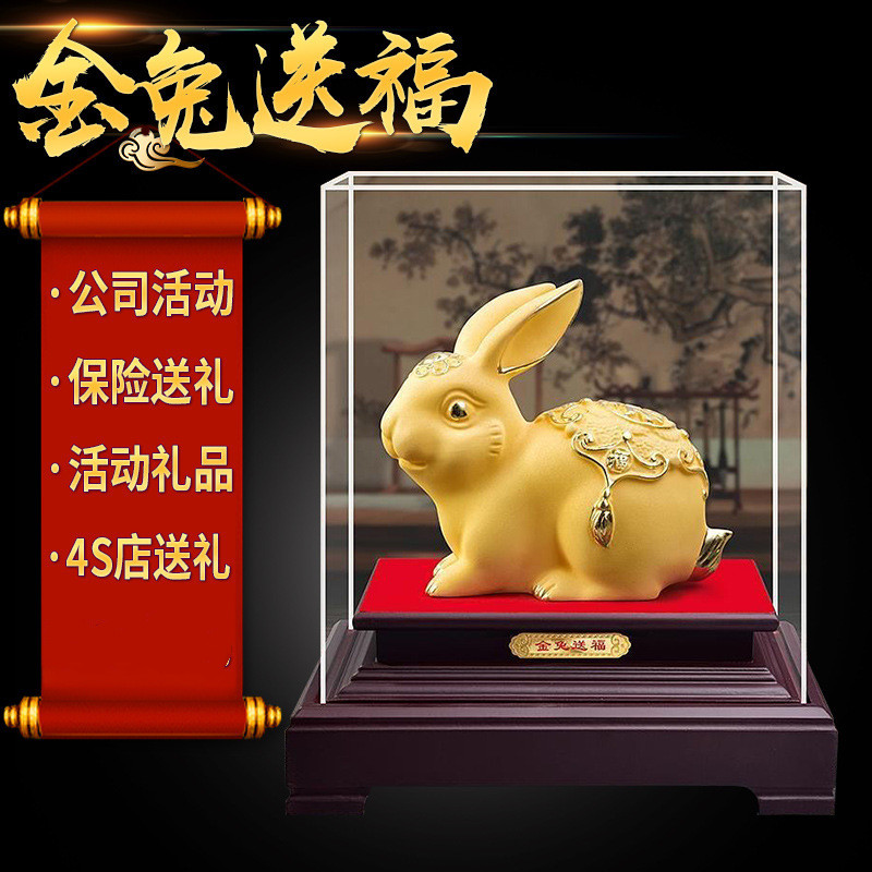 兔子摆件 金兔摆件玉兔招财 绒沙金礼品生肖兔摆件年会开门红送礼