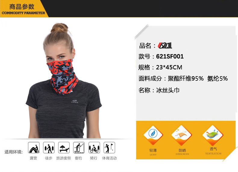 户外防晒脖套冰丝防紫外线头巾夏季男女魔术面巾骑行面罩围脖薄款