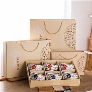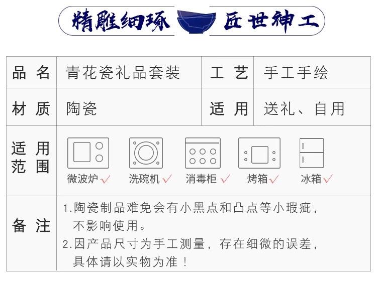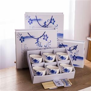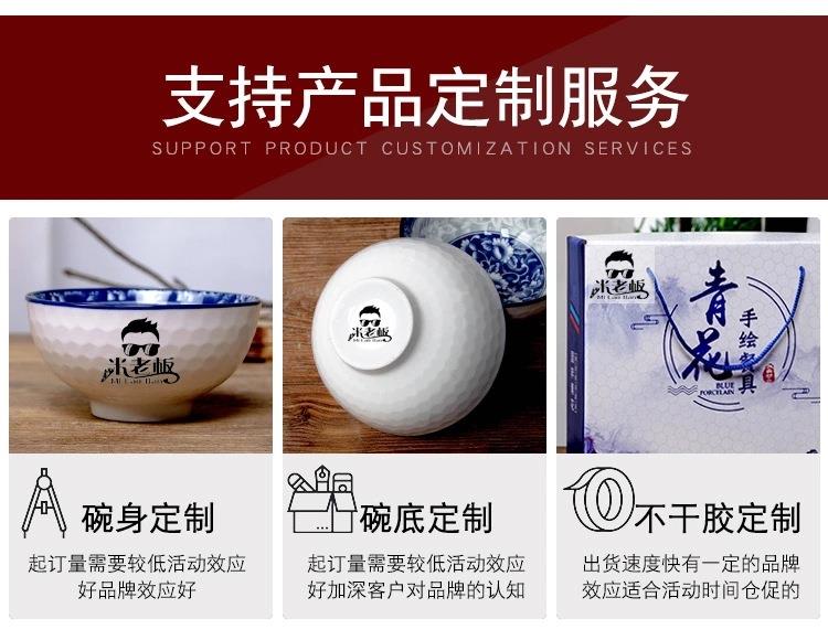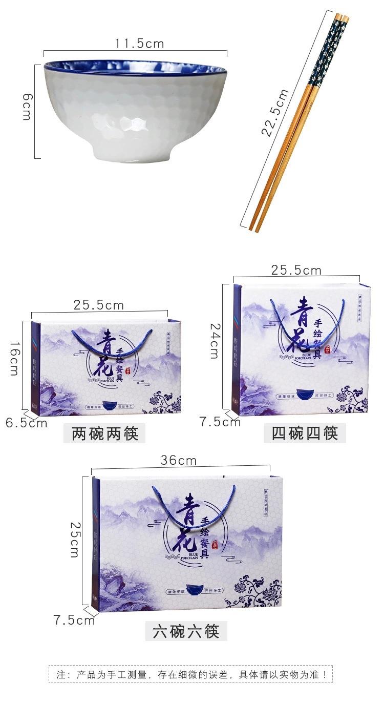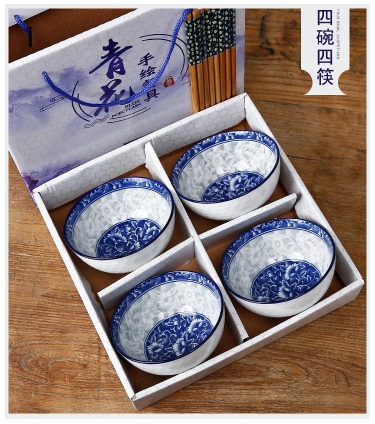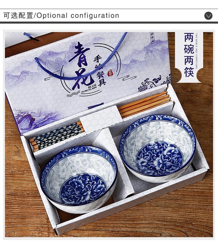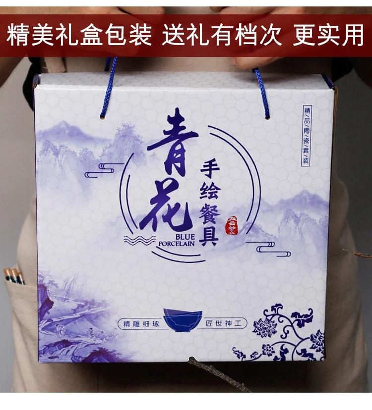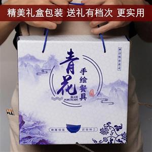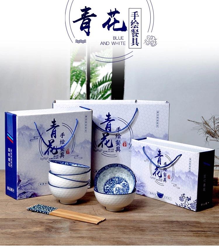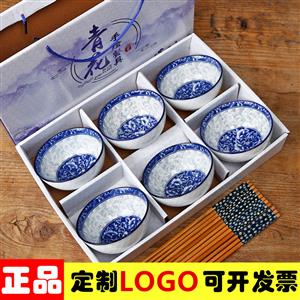 青花瓷碗套装礼品碗陶瓷碗筷套装餐具开业拓客赠品会销礼盒装丁制logo