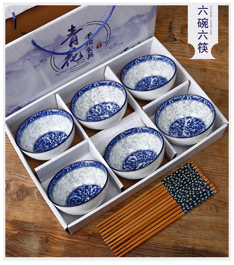 - 青花瓷,6碗6筷