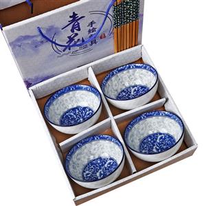 - 国色青花瓷,4碗4筷