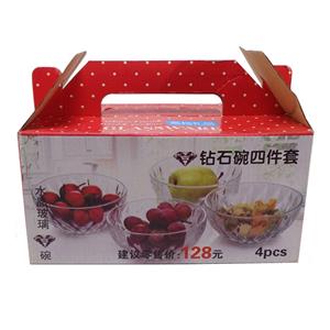 玻璃钻石碗四件套二件套水晶碗套钻石碗盘六件套礼品拓客促销礼盒套装