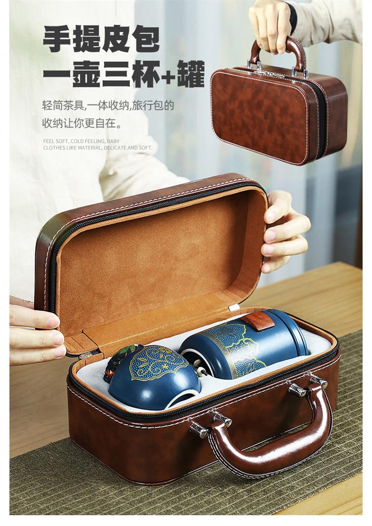 - 蓝色一壶三杯+茶叶罐+手提皮包
