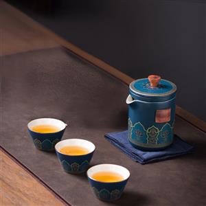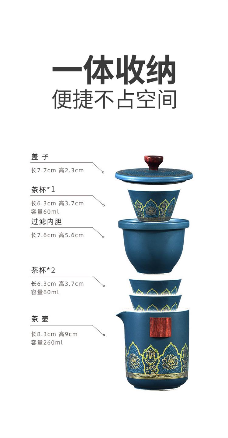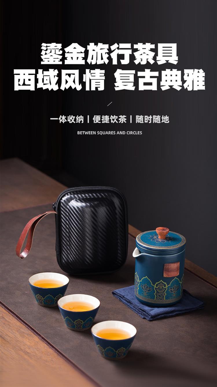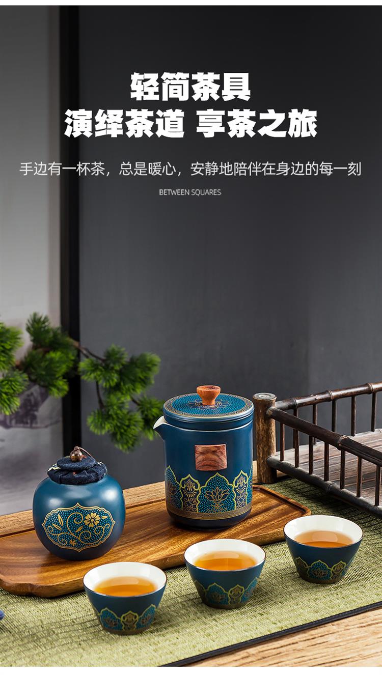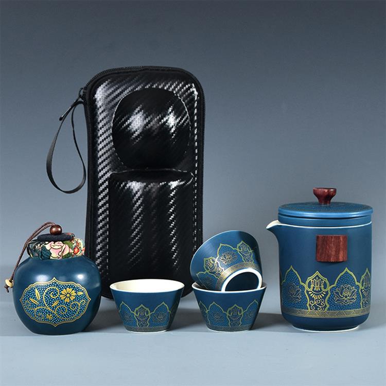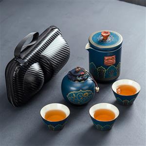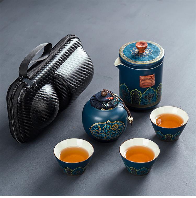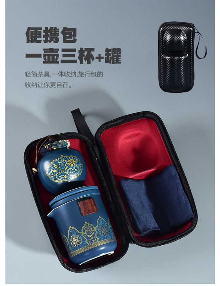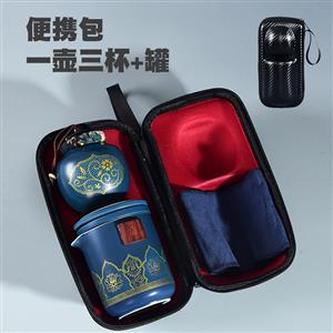 - 蓝色一壶三杯+茶叶罐+旅行包