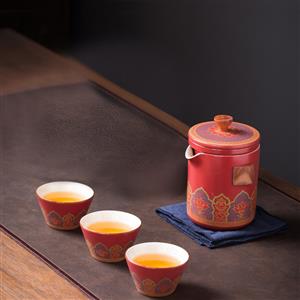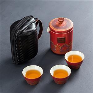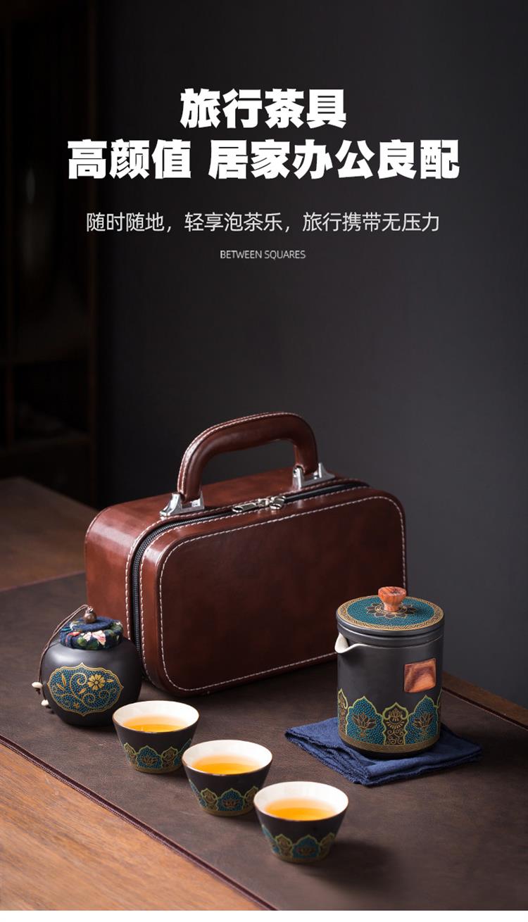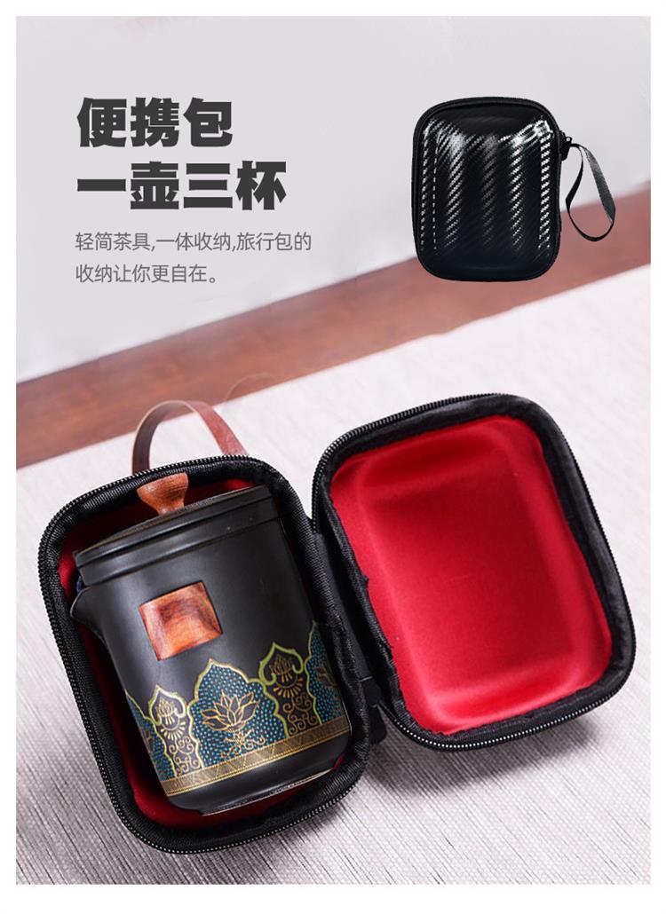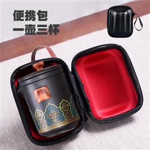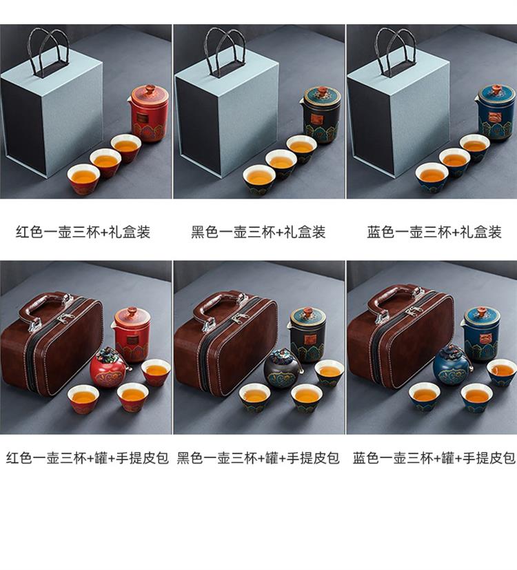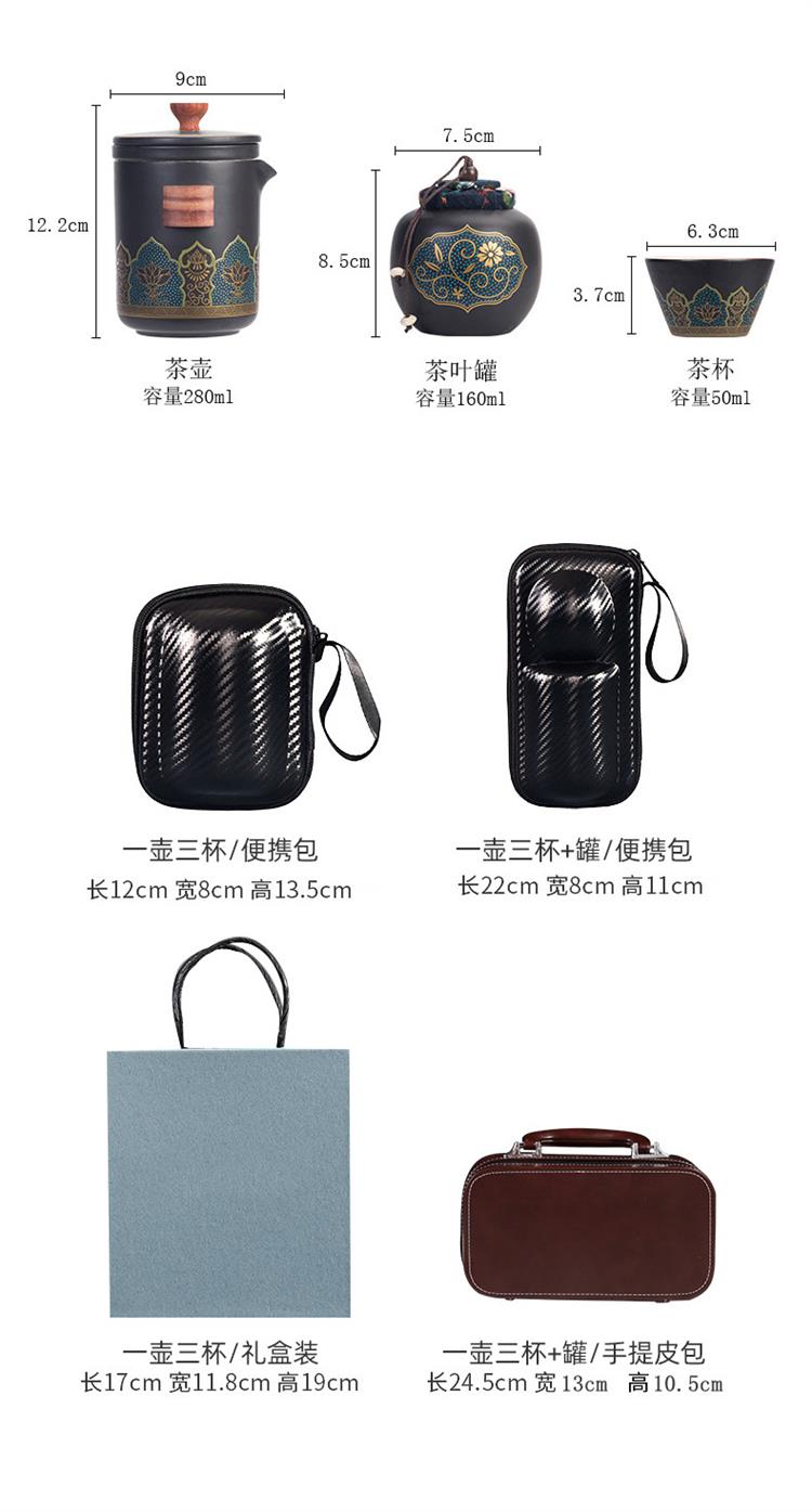 - 黑色一壶三杯+茶叶罐+手提皮包