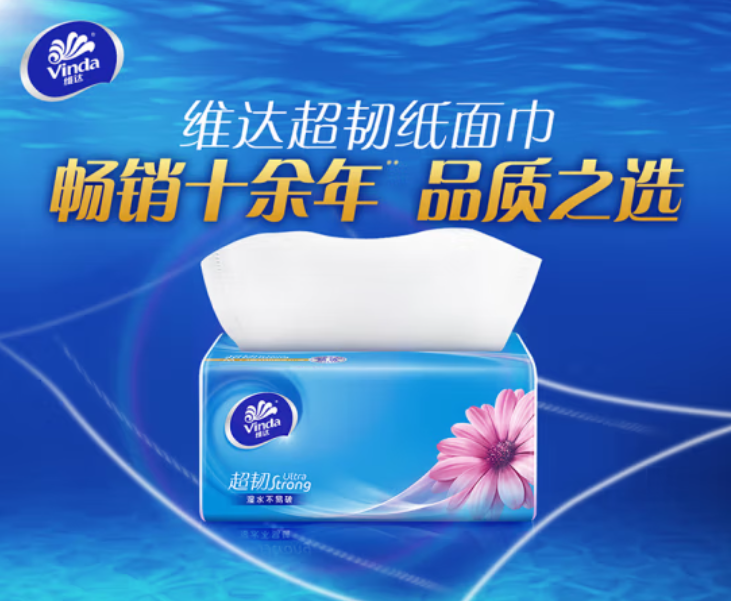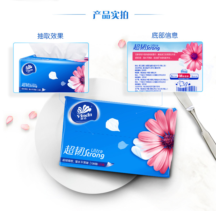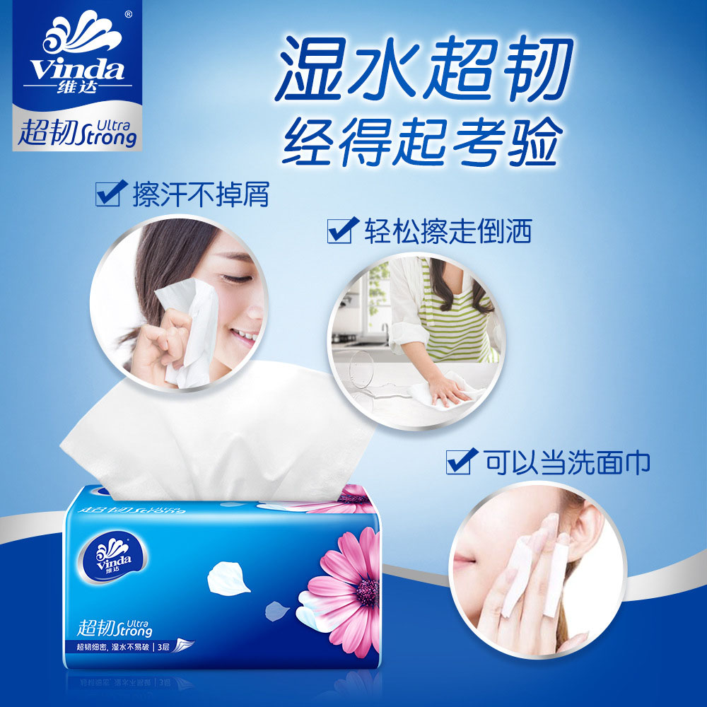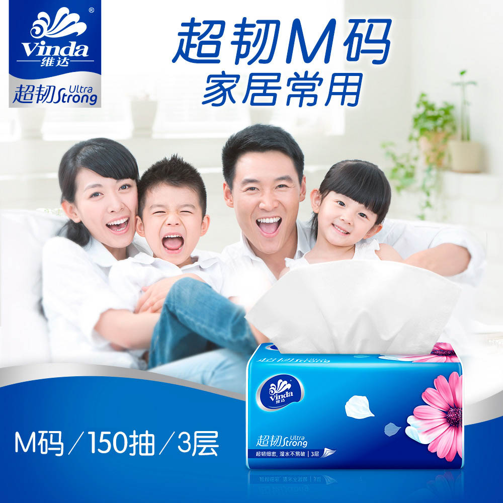 (特)维达超韧抽纸M码3层150抽整箱24包实惠装中规格无香餐巾纸家用