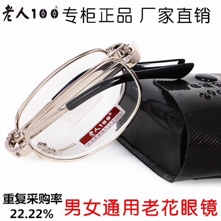 正品夕阳红老花镜 品牌高档折叠便携超轻树脂男女款伸缩镜腿X8009