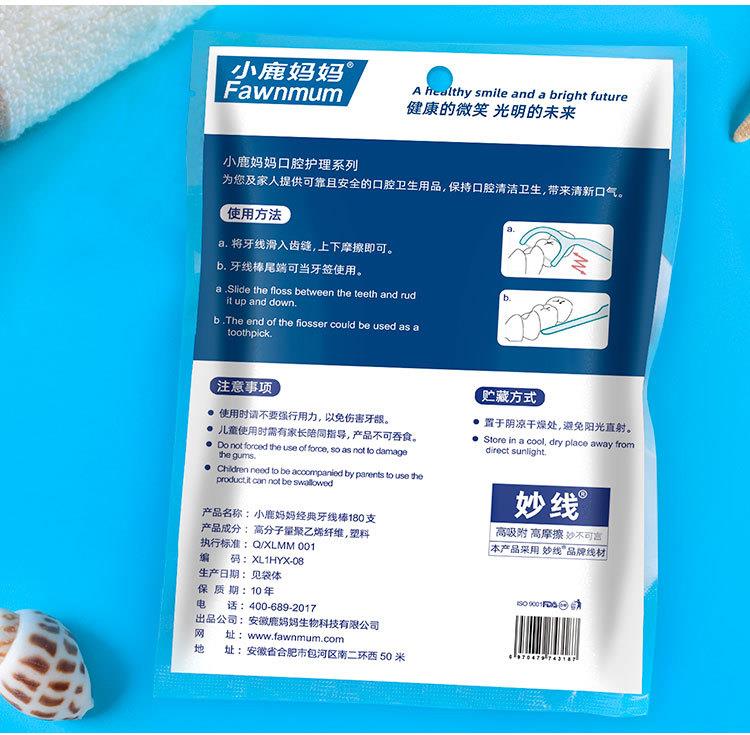 (特)小鹿妈妈 牙线 一次性独立装细滑牙线棒 塑料牙签 180支/袋装