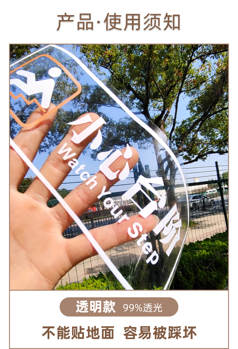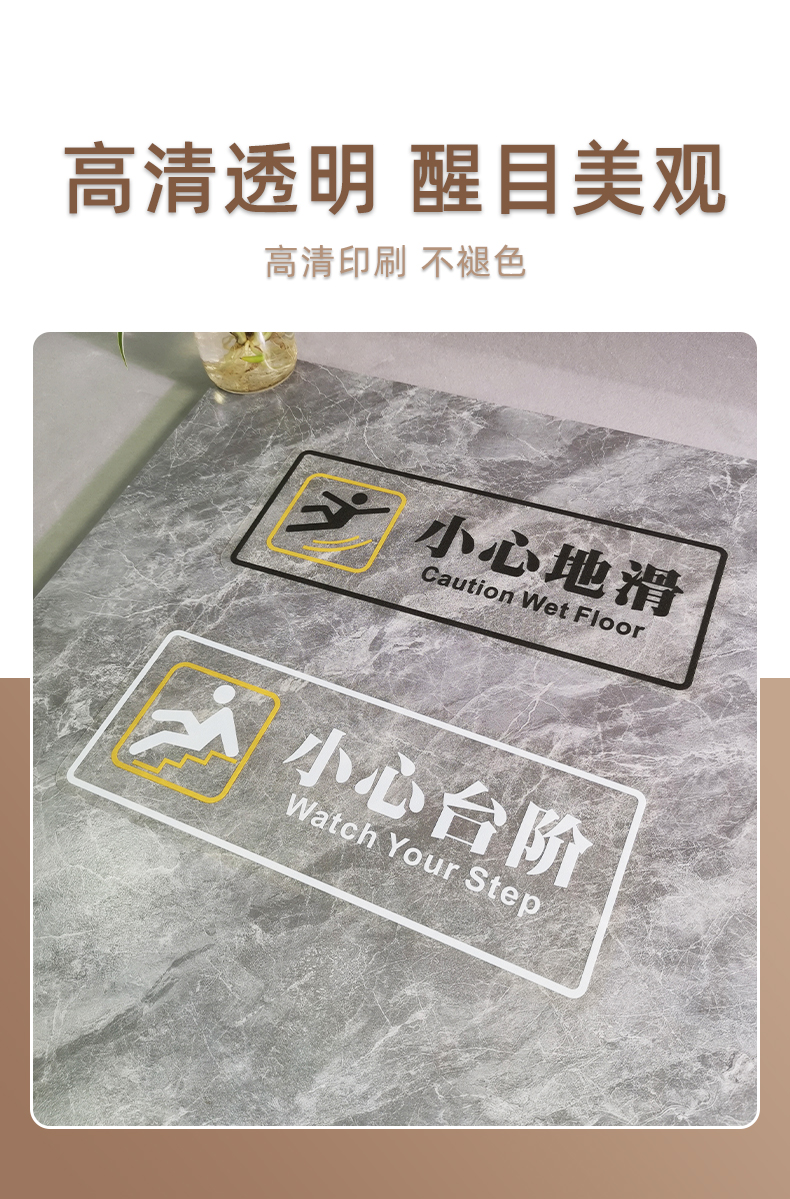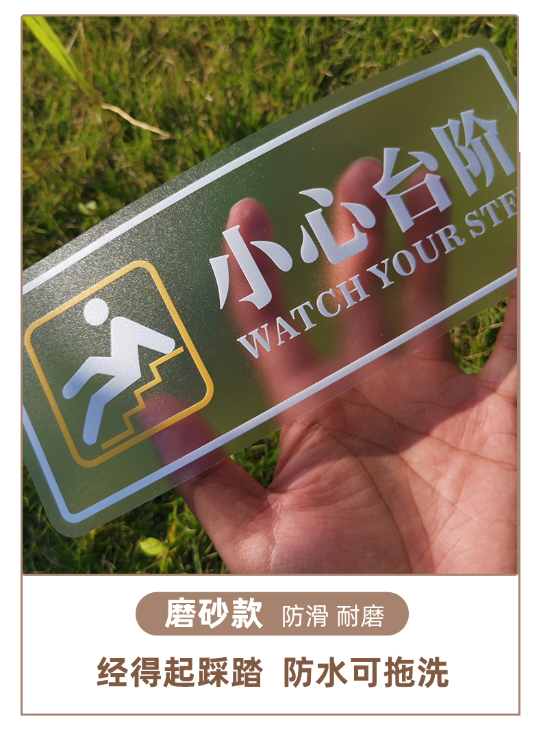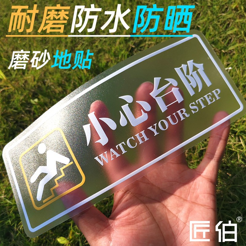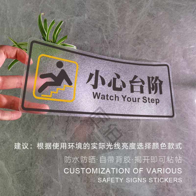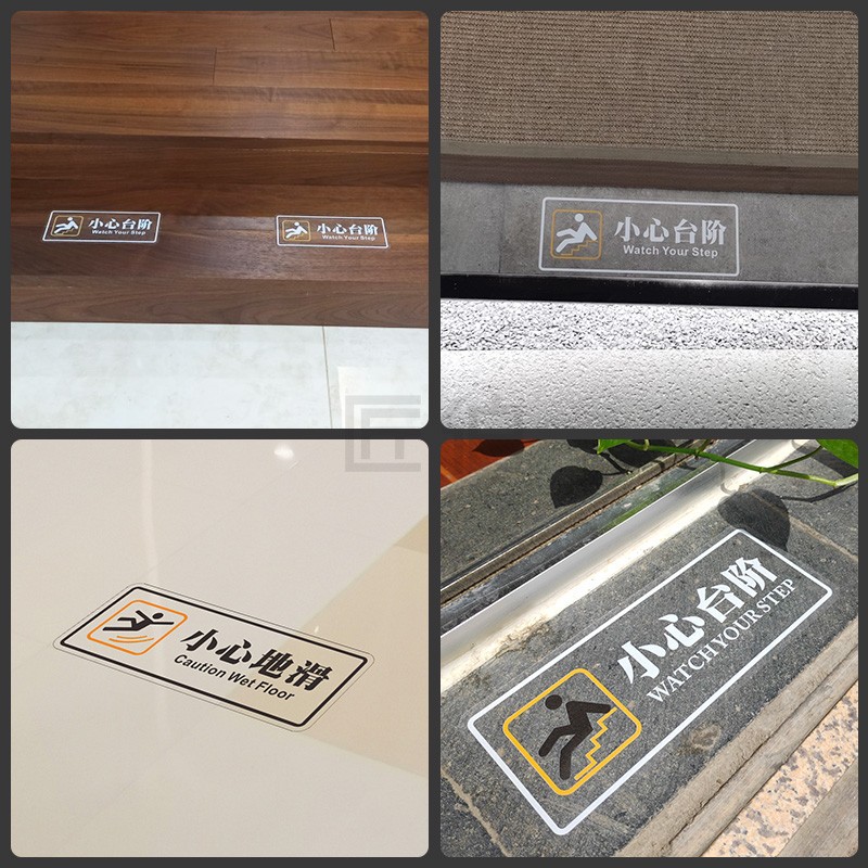 小心台阶地贴请注意安全标识牌地滑提示牌定制防水防滑阶梯警示贴