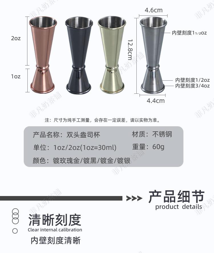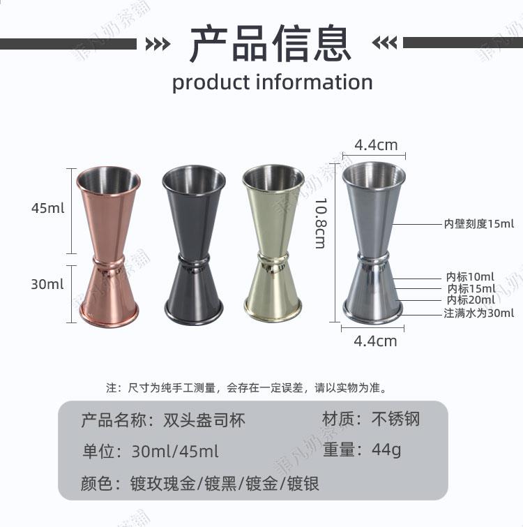 全适 304不锈钢 量杯 调酒用 盎司杯 吧台量杯 安士杯定量 量酒器 双头量杯 双头量盅 调酒器配件 15/30ml