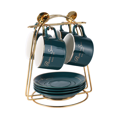欧式陶瓷咖啡杯套装家用轻奢小奢华下午茶具简约小清新杯碟勺带架