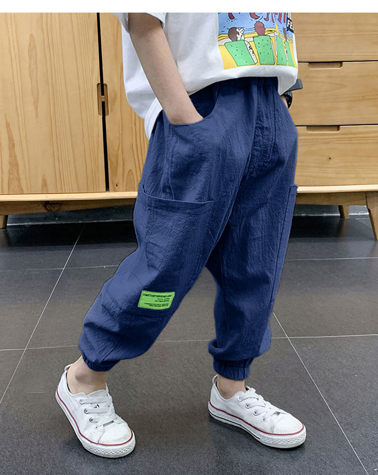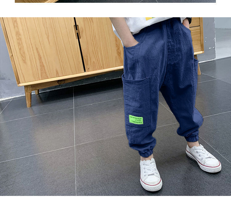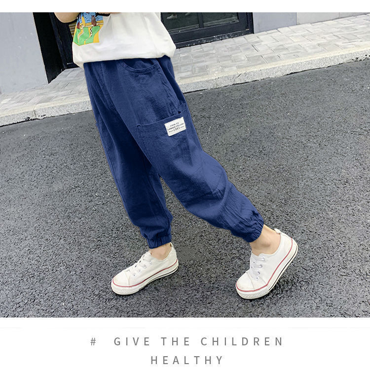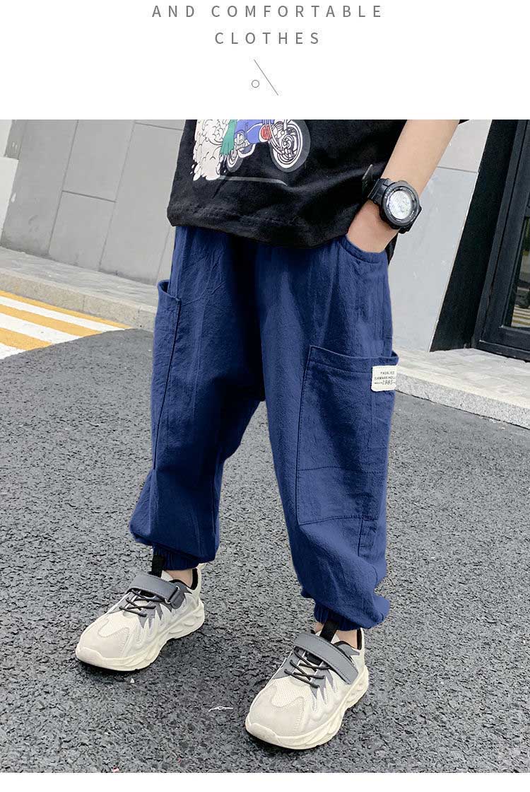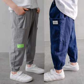 (特)欧玉诗防蚊裤男大童夏天薄款小男孩长裤子宽松轻薄透气休闲裤夏装男童裤子夏季2022新款儿童大中小童 蓝色【薄款防蚊裤】