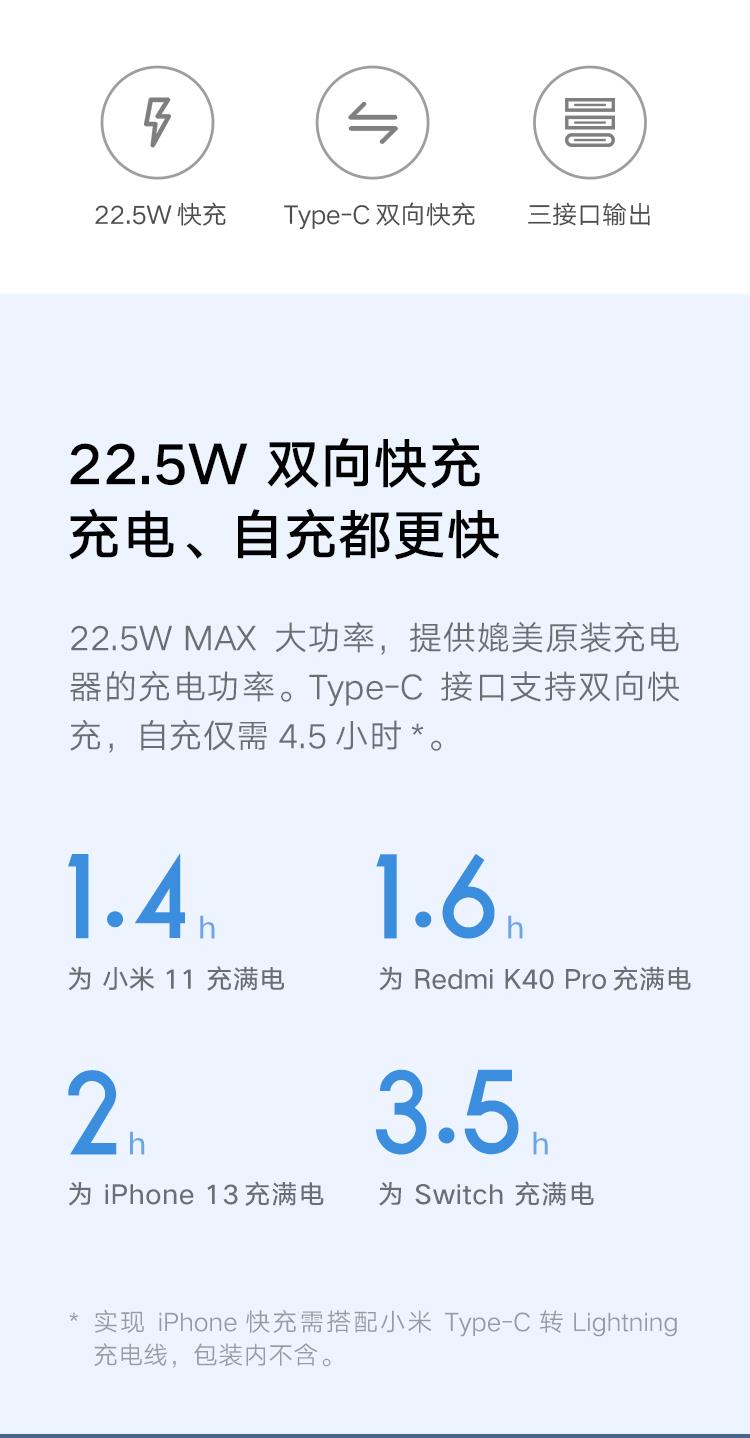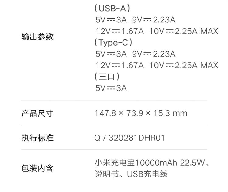 (特)小米充电宝 10000mAh 22.5W 移动电源