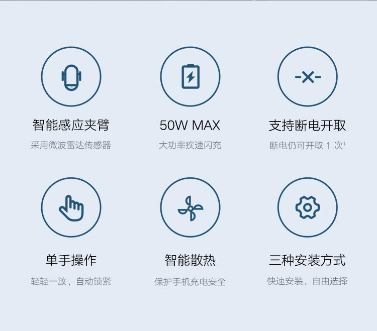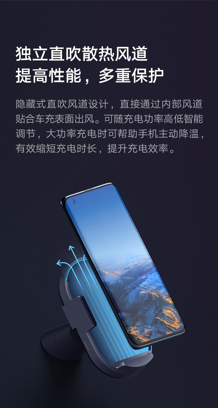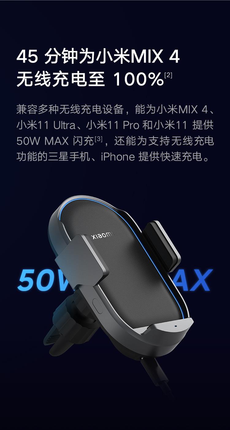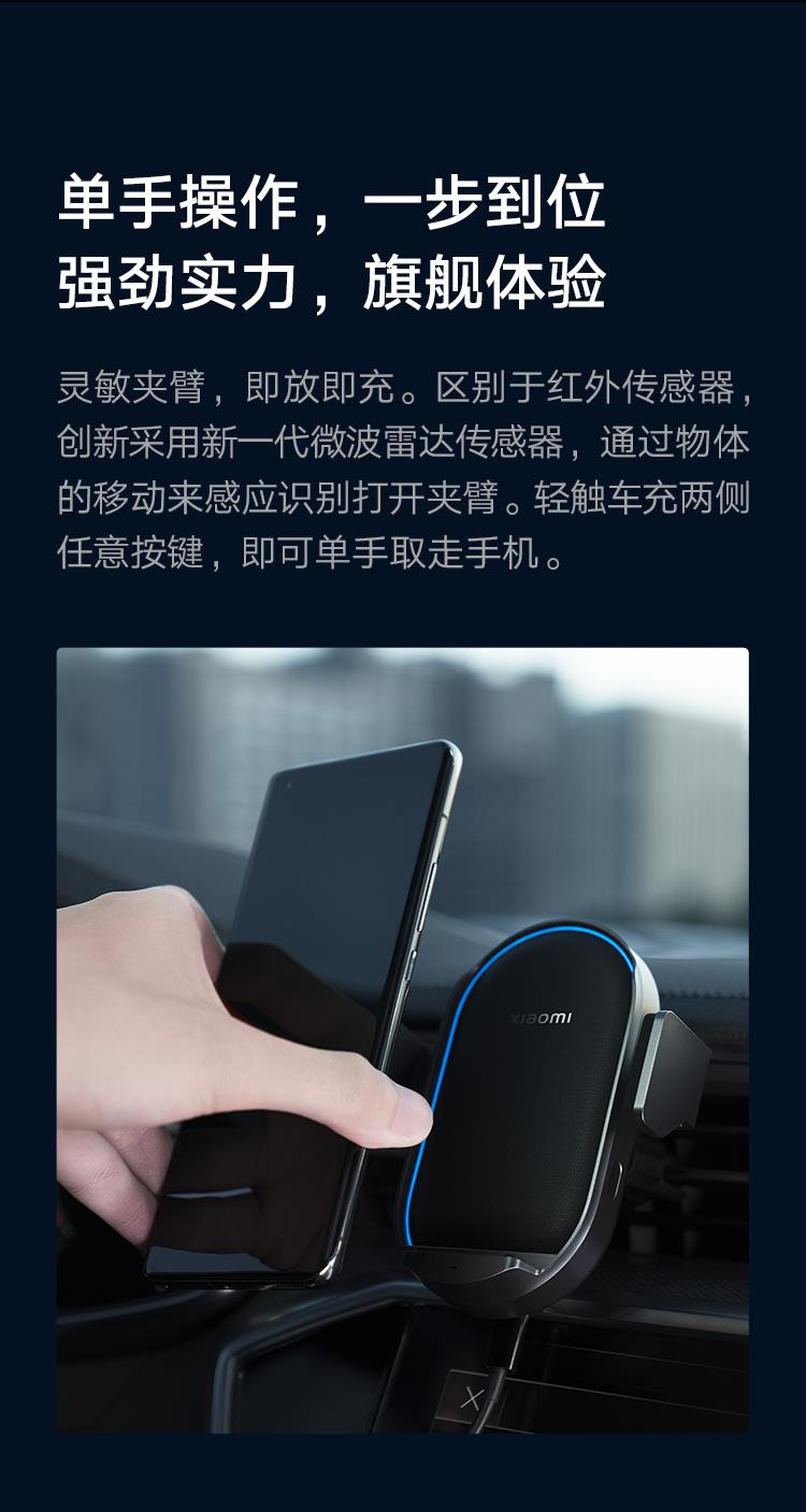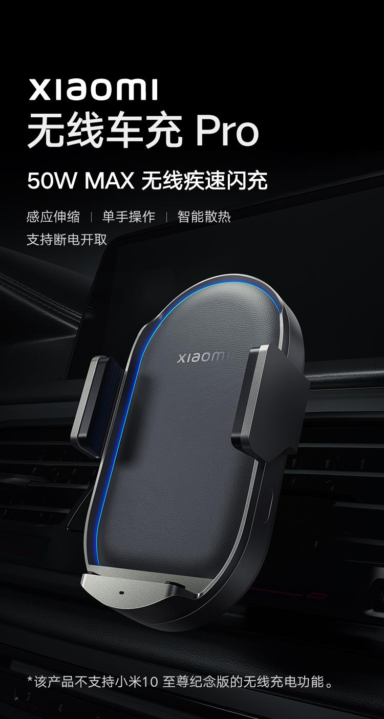 (特)小米无线车充pro车载支架标配点烟器适配器 50W大功率闪充快速充电电动变形夹臂双重散热更安全智能兼容