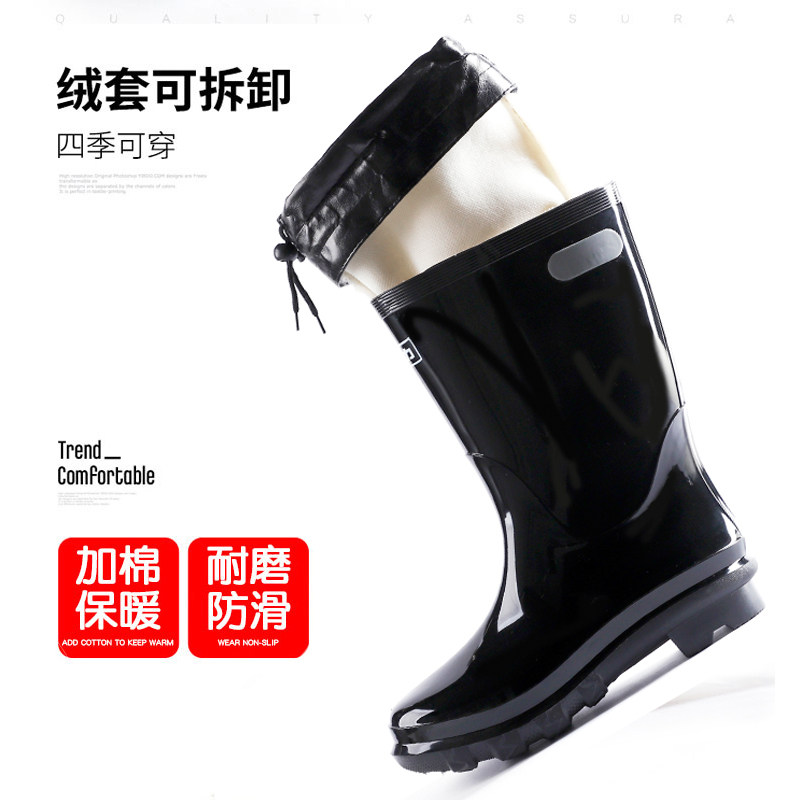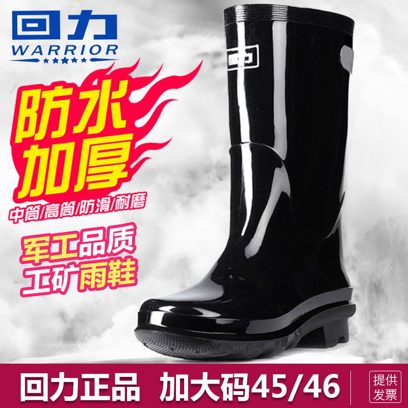 回力雨鞋男防水鞋加厚工地胶鞋男加绒雨靴女短筒中筒高筒保暖套鞋