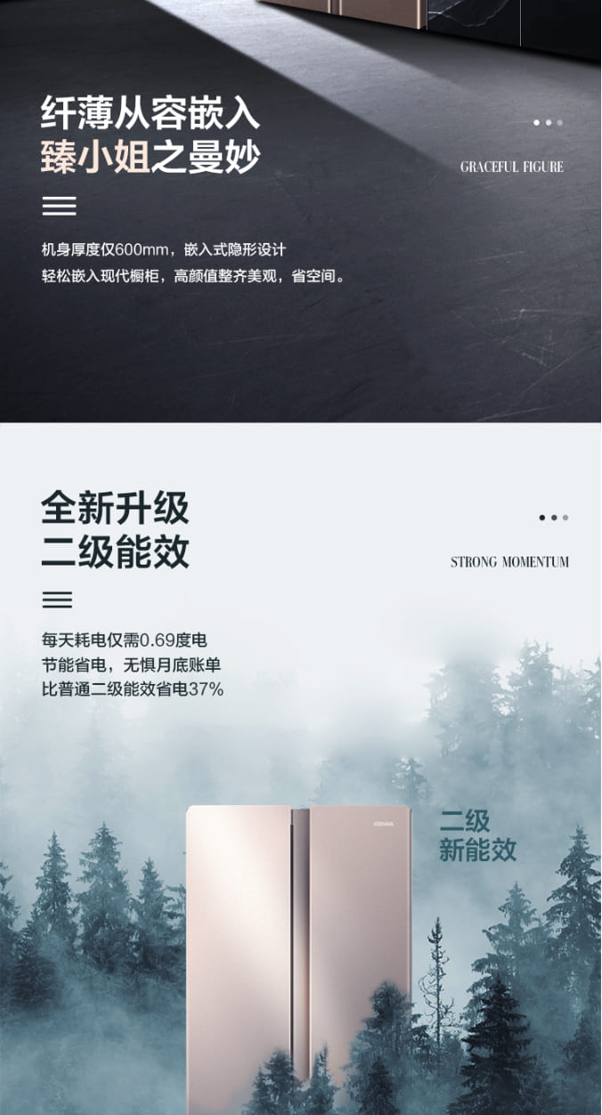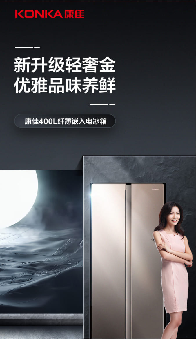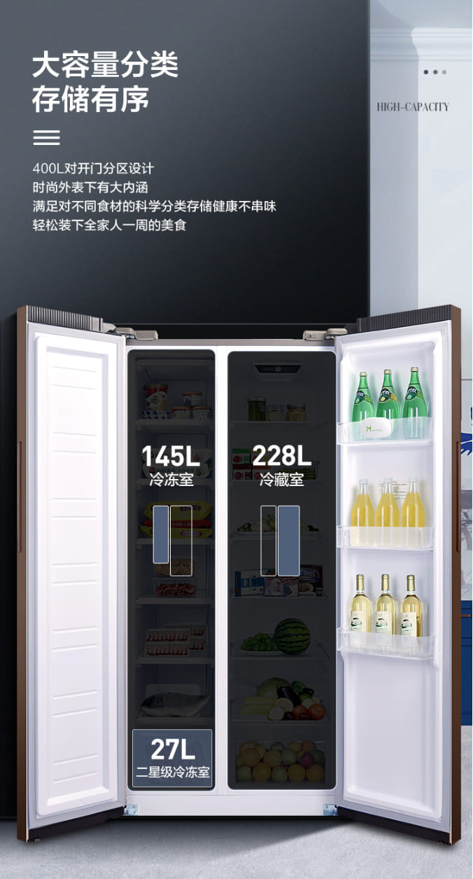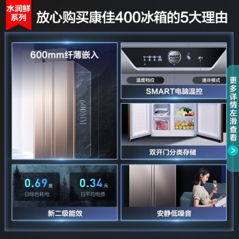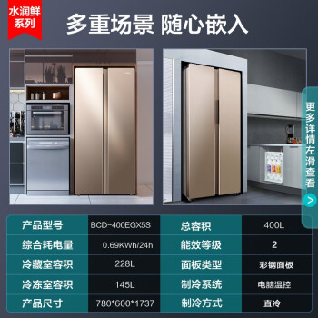 (特)康佳(KONKA)400升对开门电冰箱 电脑温控 超薄机身 低噪节能家用双开门大冰箱 BCD-400EGX5S