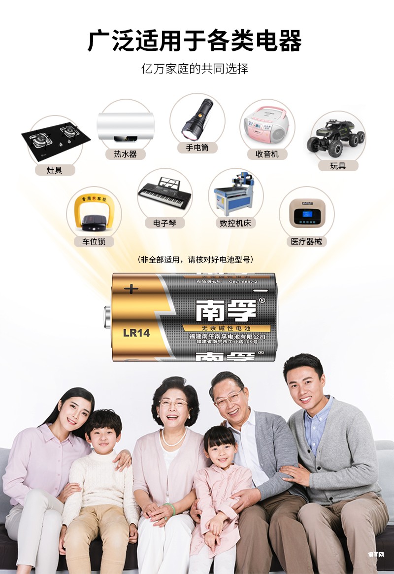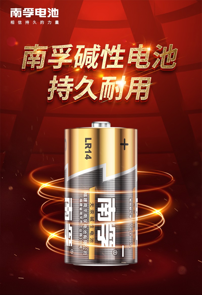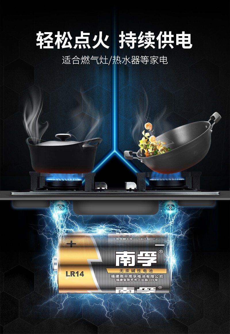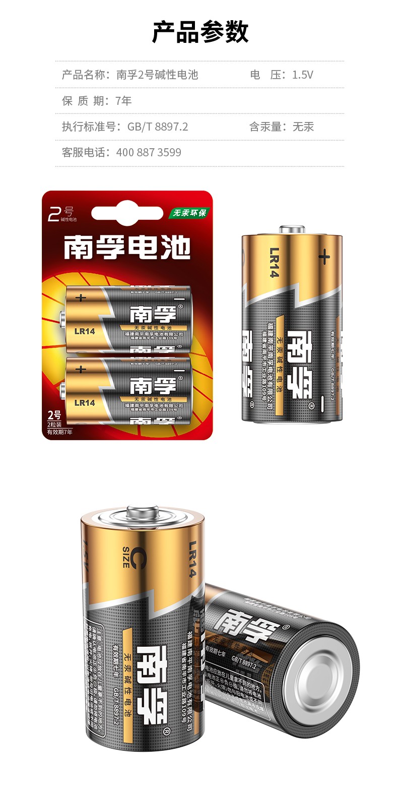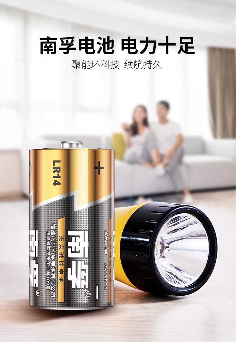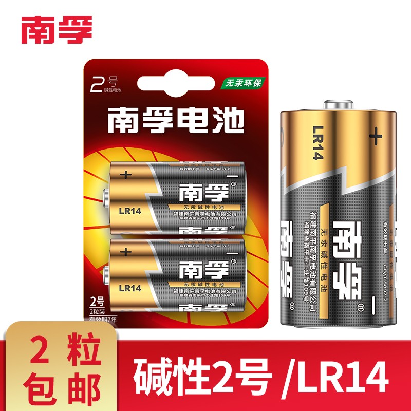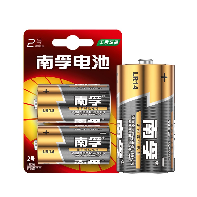 (特)南孚2号碱性电池2粒 大号电池 适用于收音机/遥控器/手电筒/玩具/热水器等 LR14