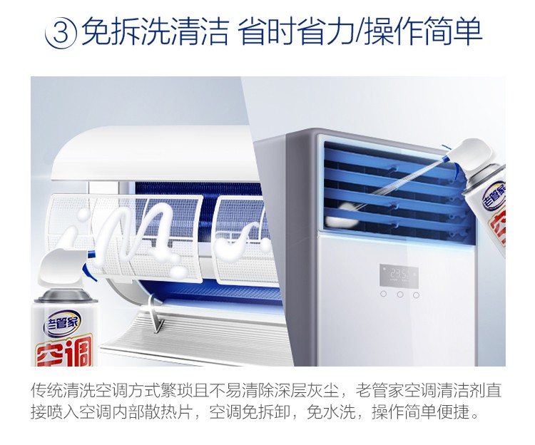 (特)老管家 空调清洗剂家用挂机柜机清洗空调免拆洗清洁液剂500ml*2