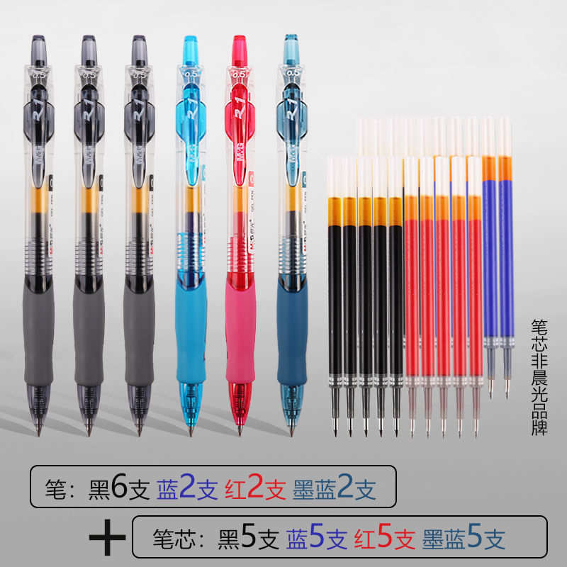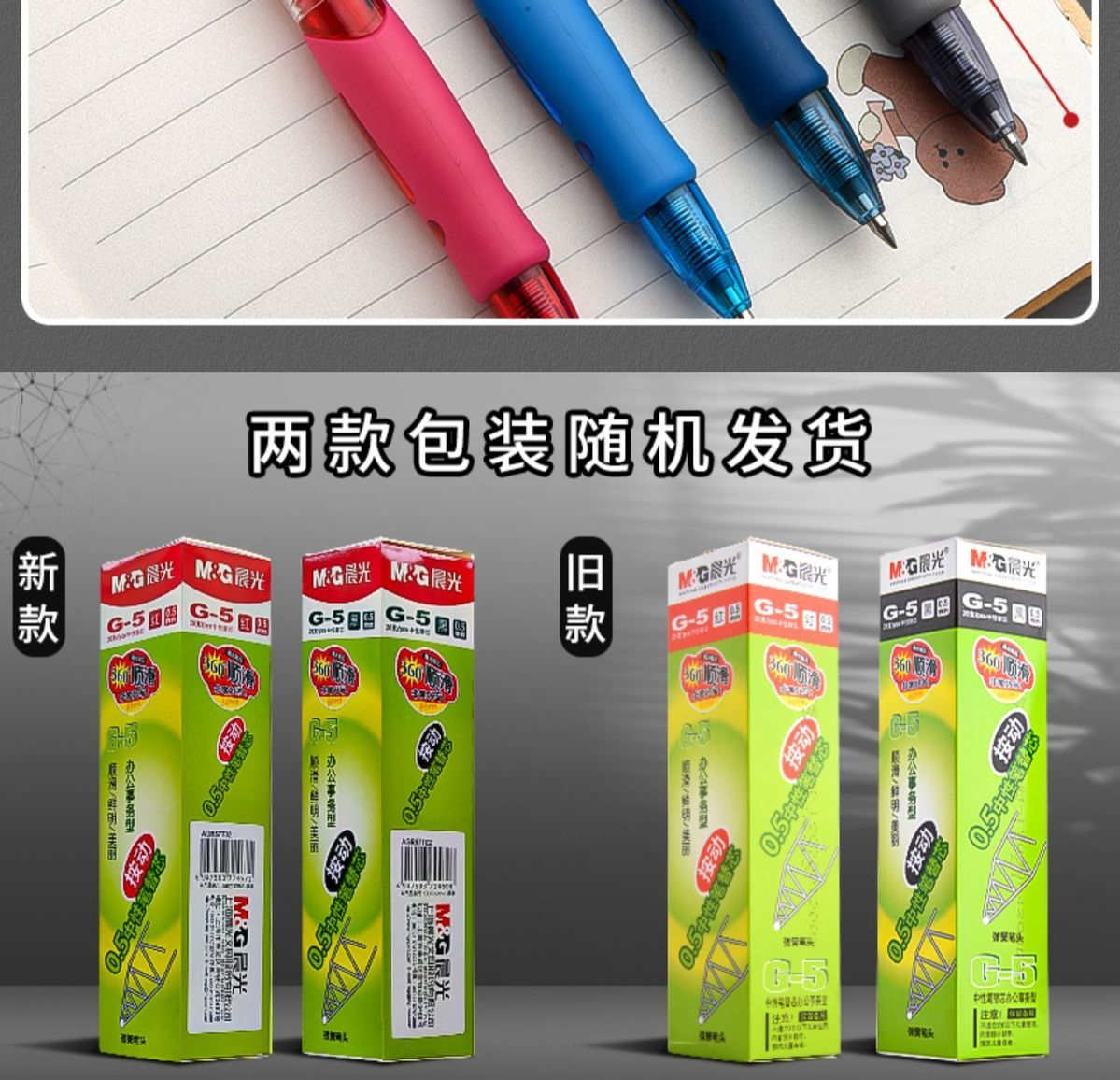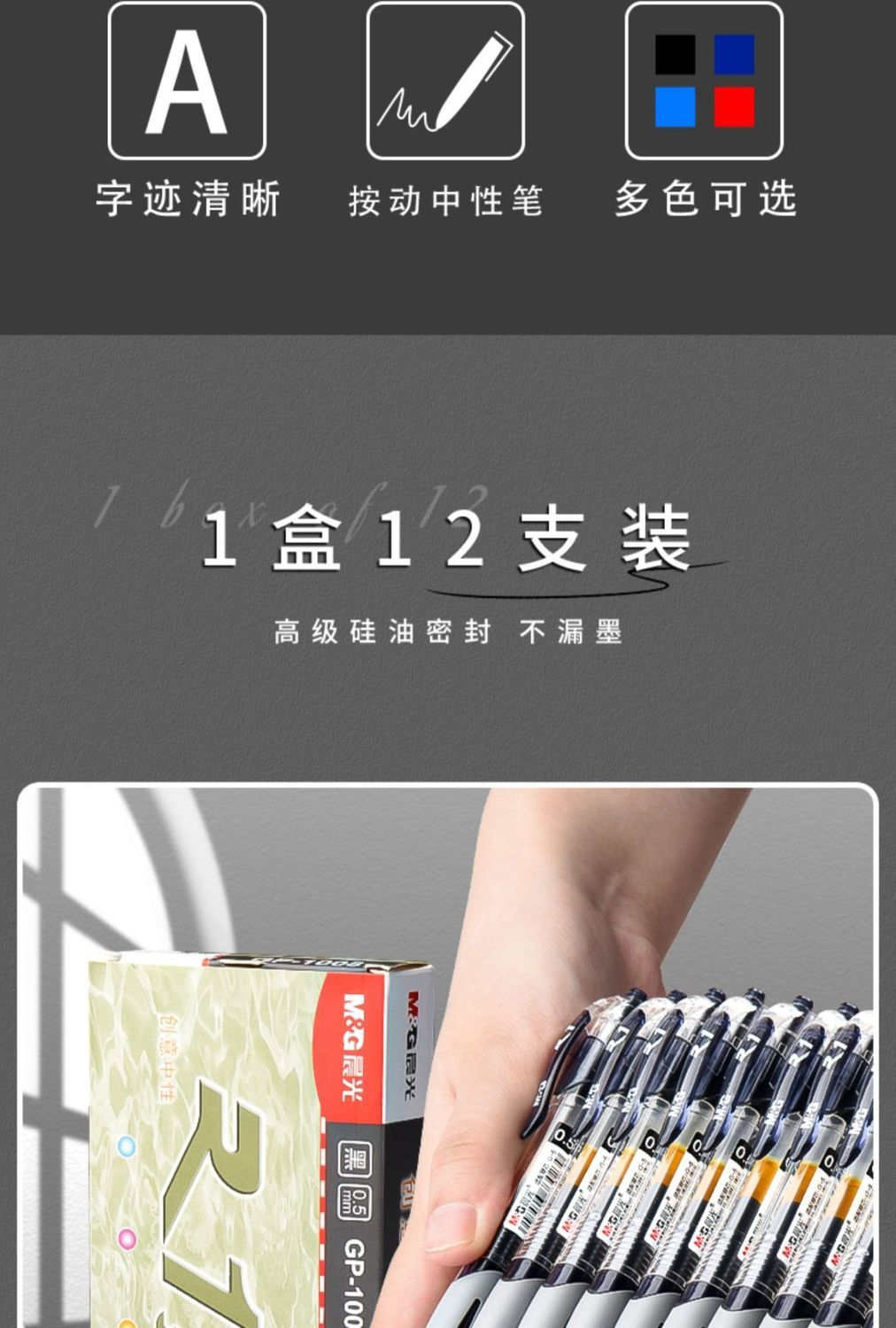 晨光GP1008按动中性笔0.5m红墨蓝黑色按压式签字笔水笔考试专用笔