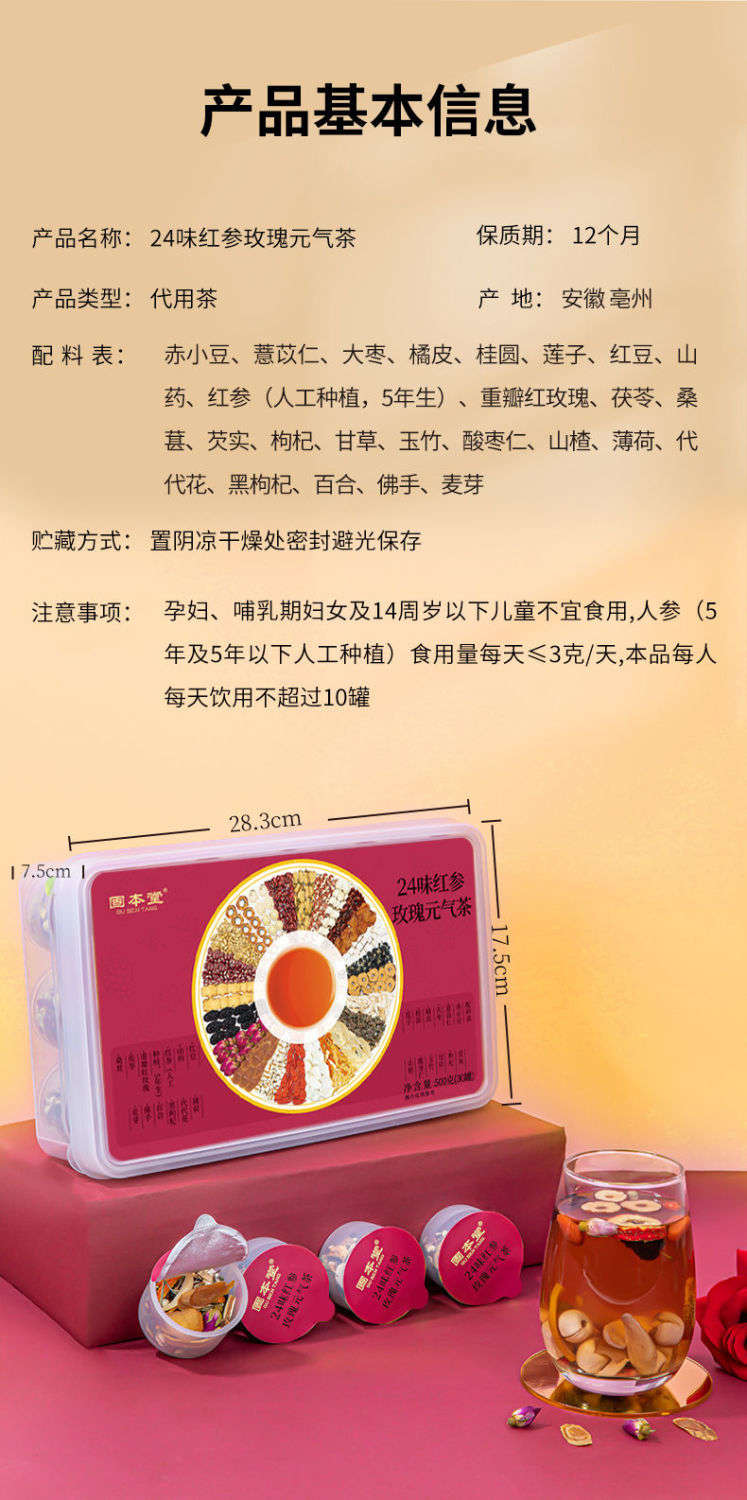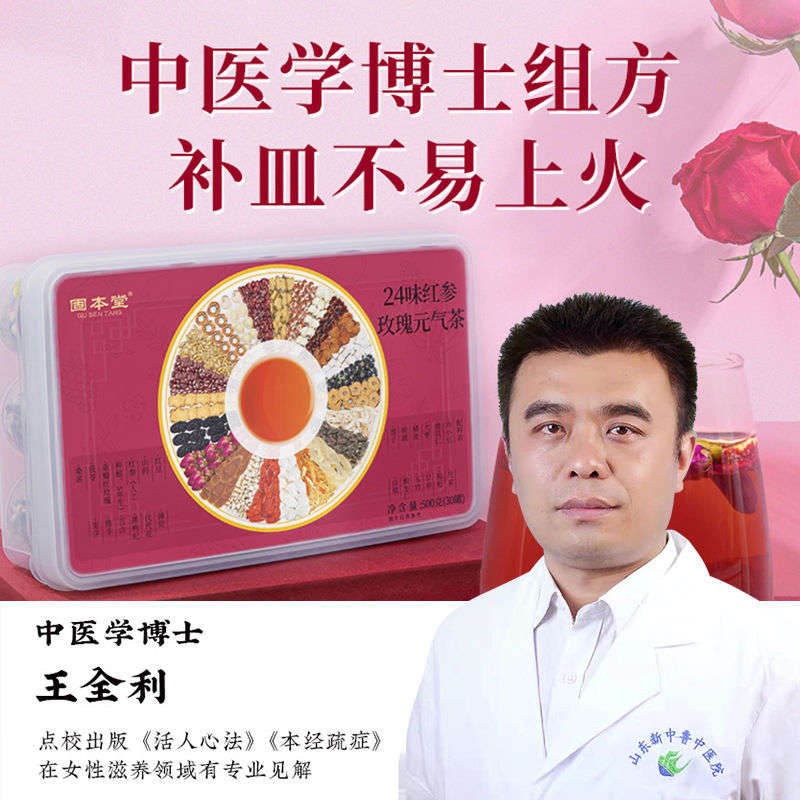 (特)固本堂24味红参红枣桂圆枸杞茶调理养生茶气血宫寒女性玫瑰花茶包