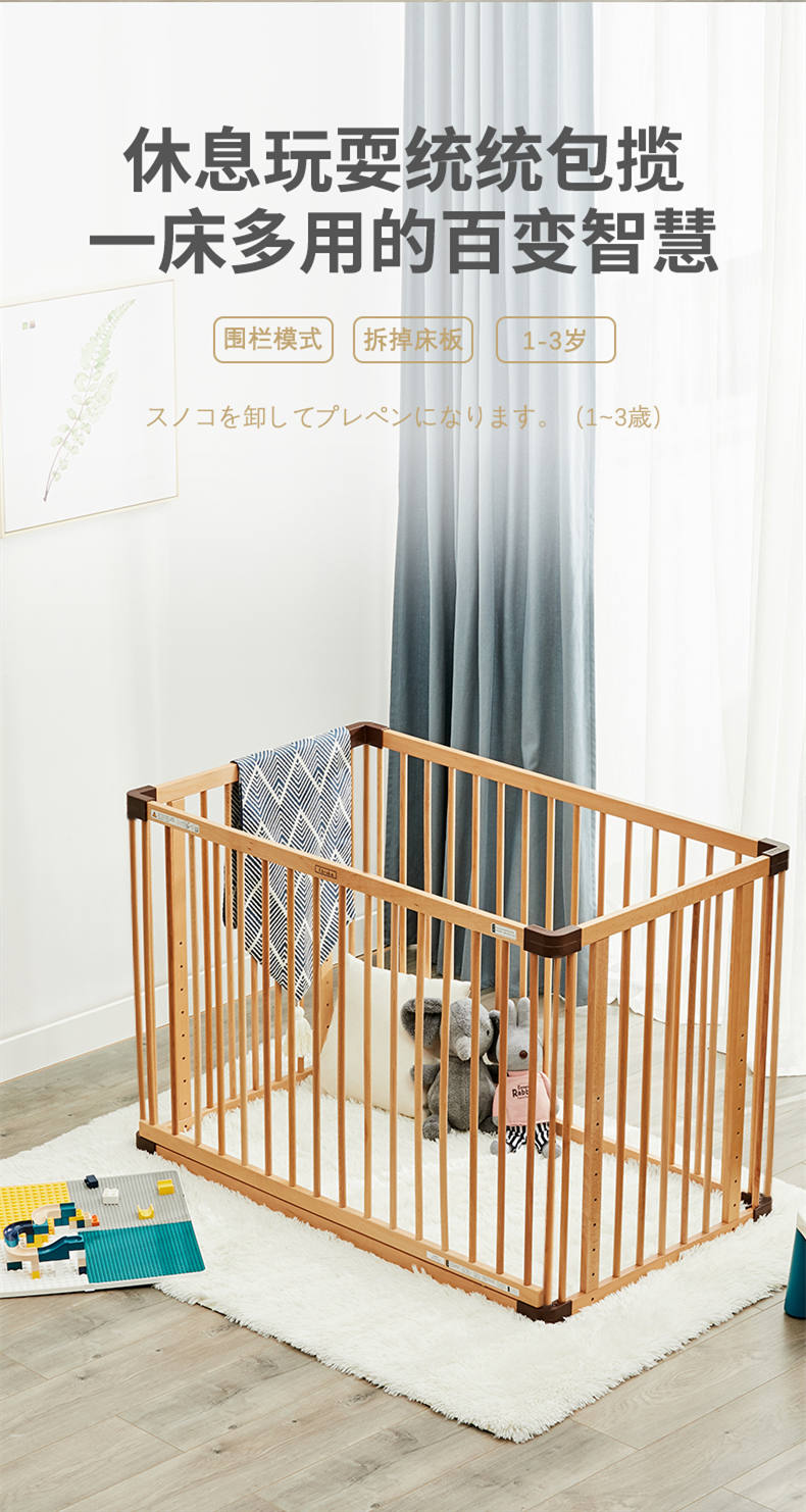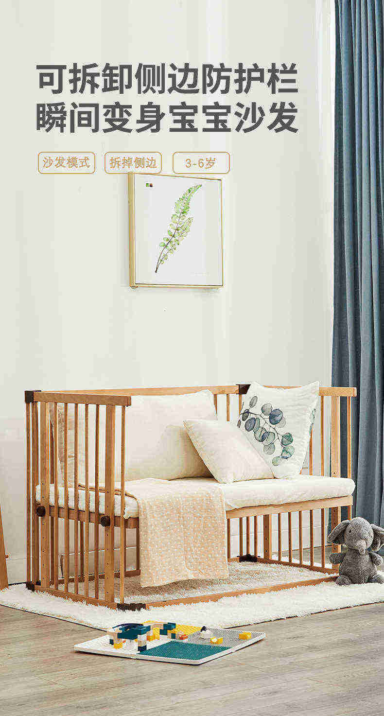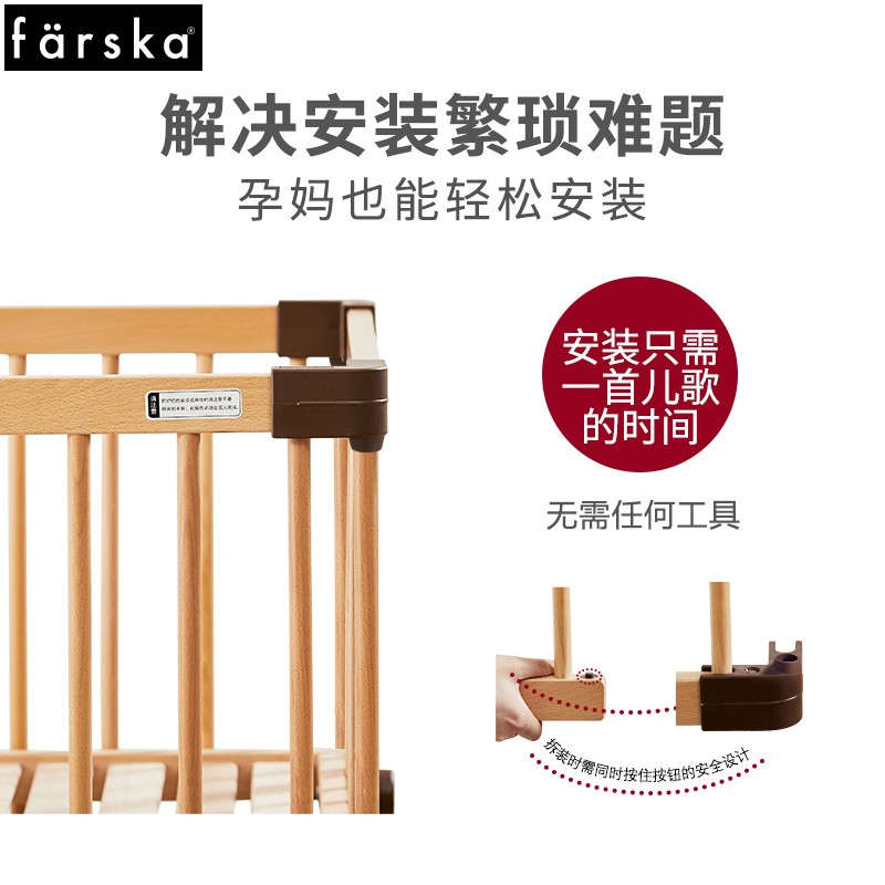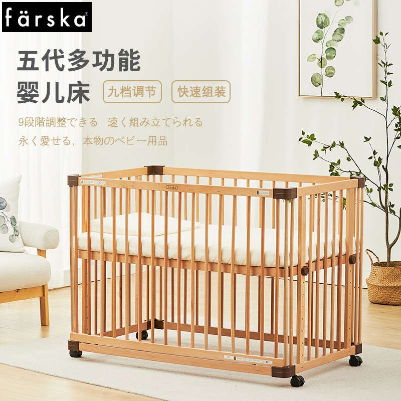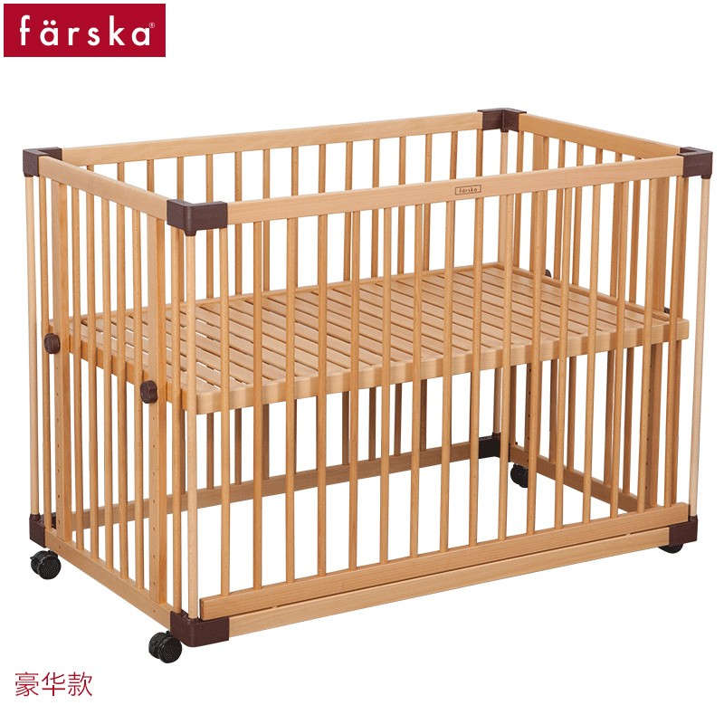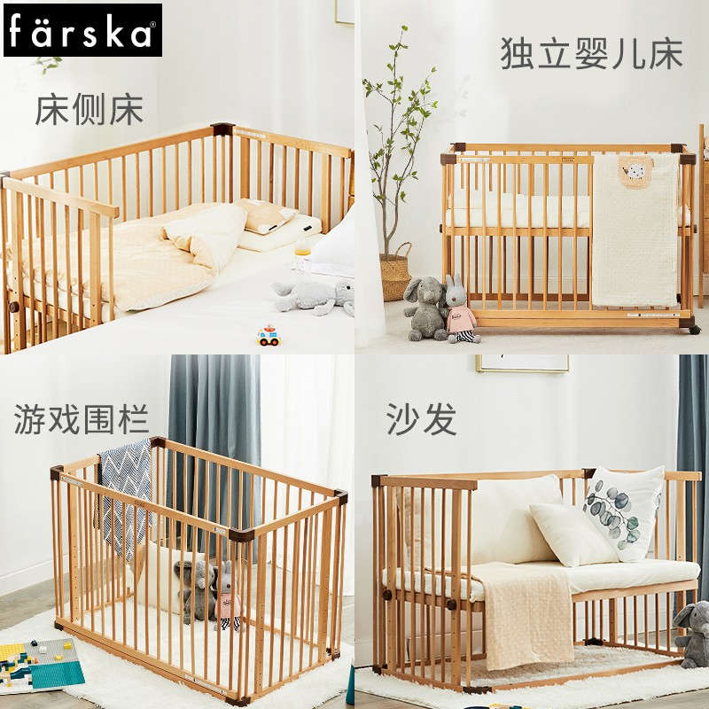 (特)farska实木婴儿床拼接大床 欧洲进口山毛榉多功能游戏床带滚轮 新生儿宝宝环保儿童床 豪华款婴儿床