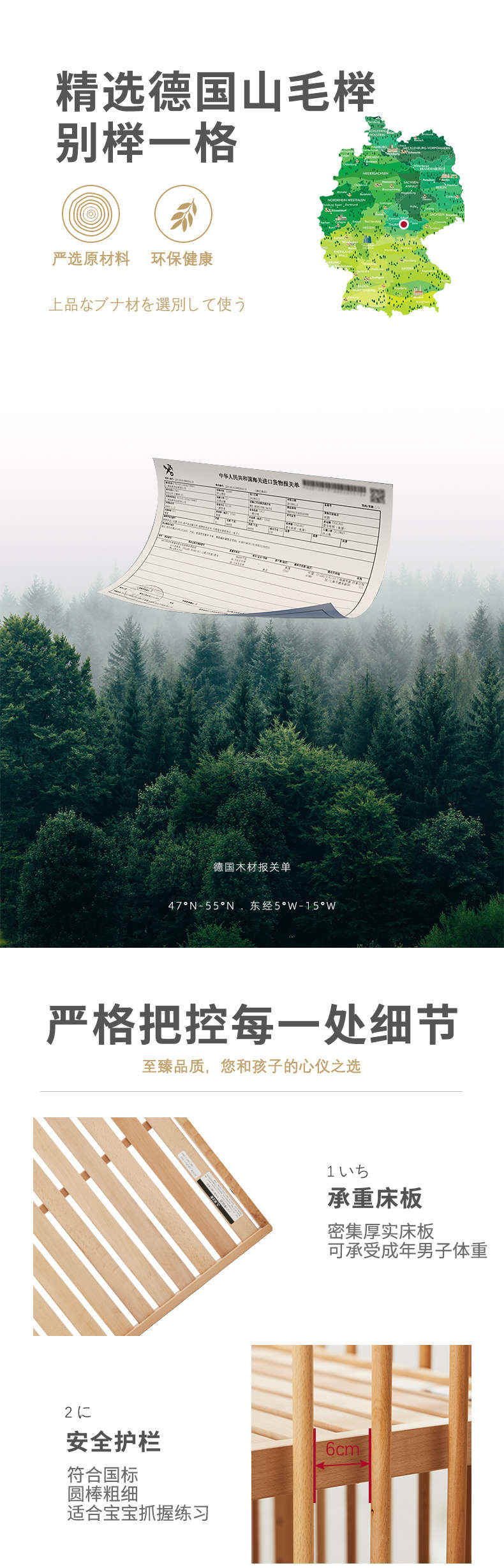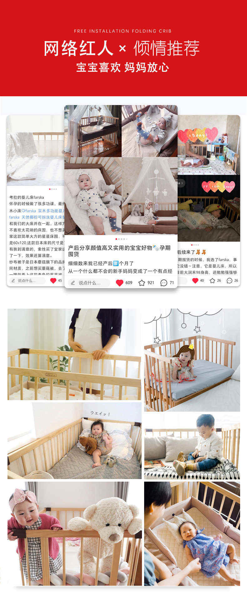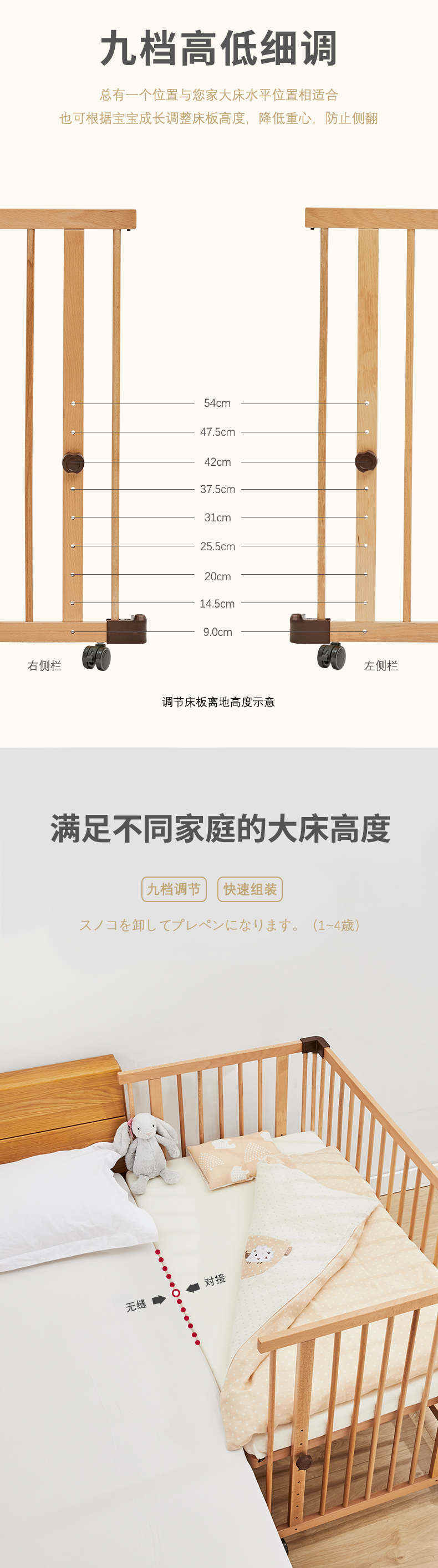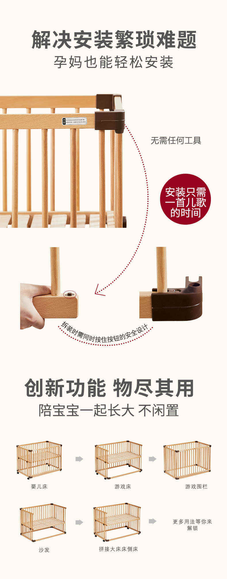 (特)farska实木婴儿床拼接大床 欧洲进口山毛榉多功能游戏床带滚轮 新生儿宝宝环保儿童床 豪华款婴儿床