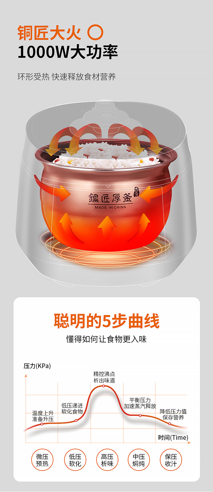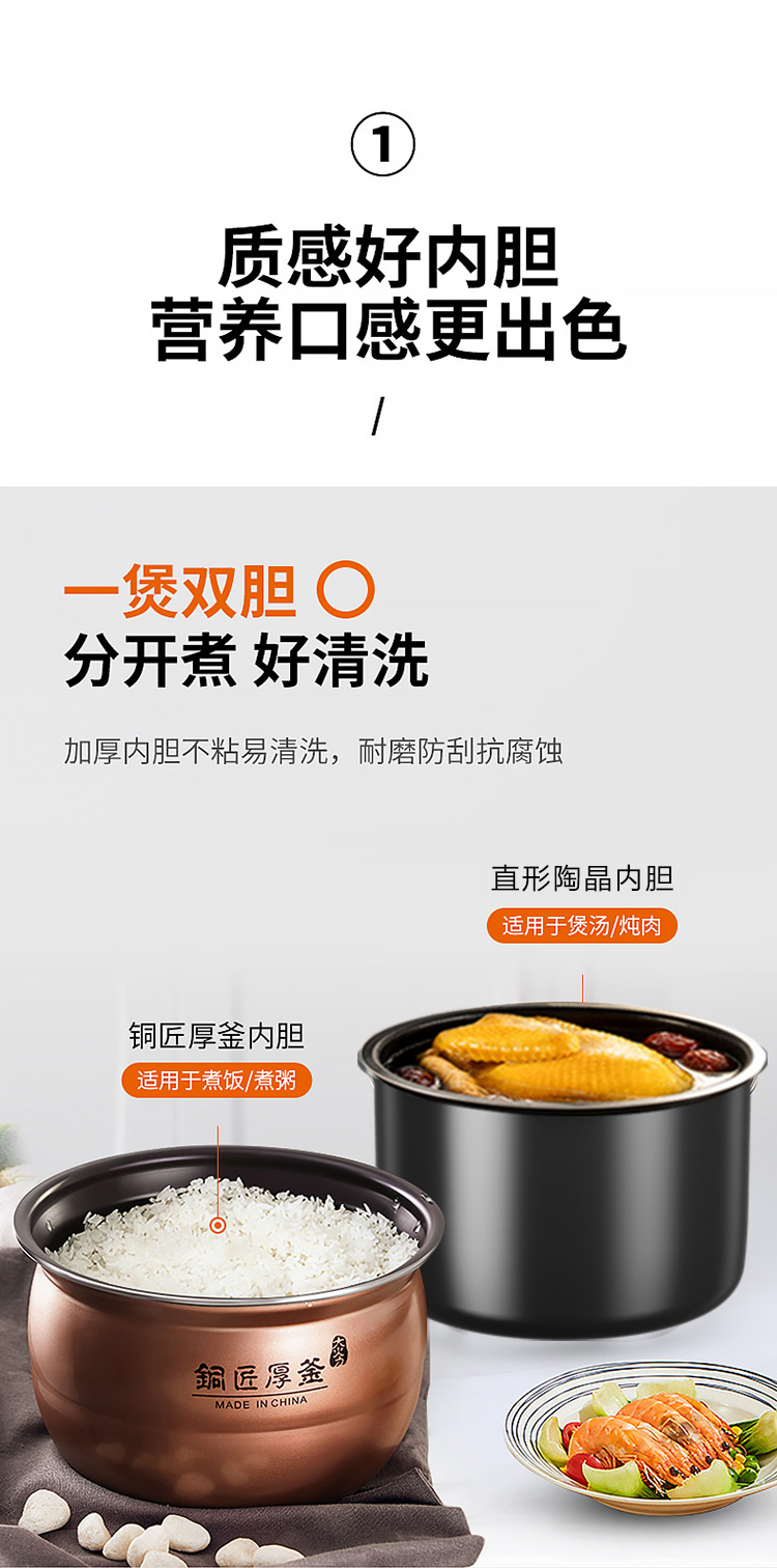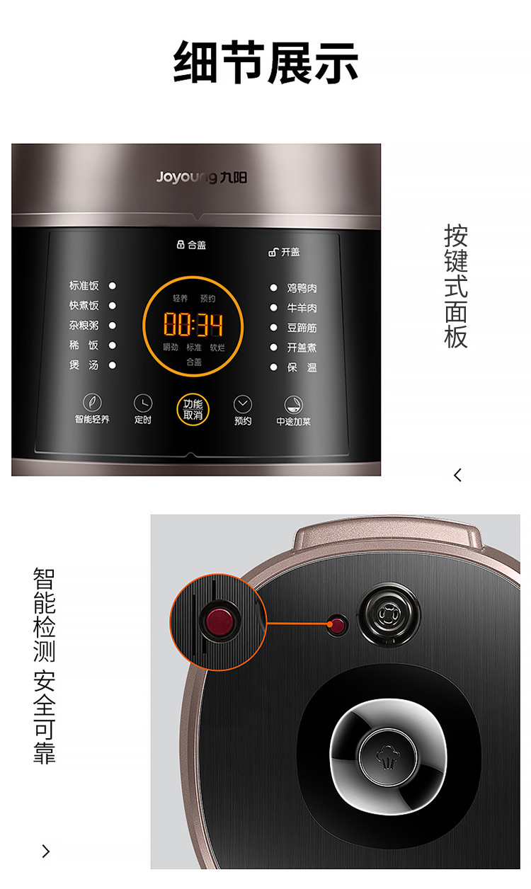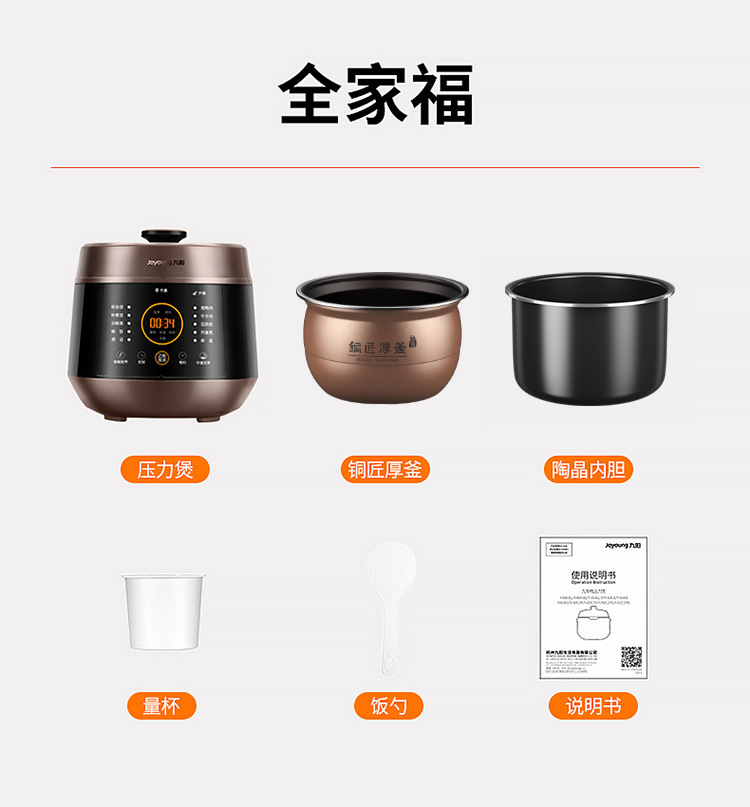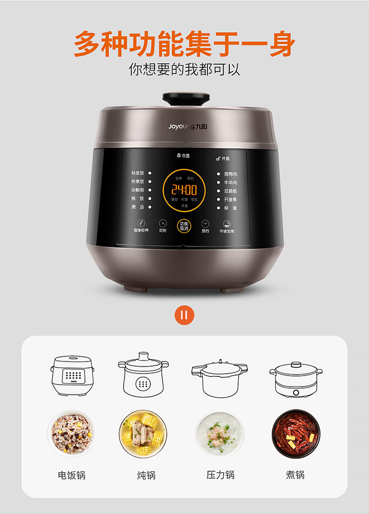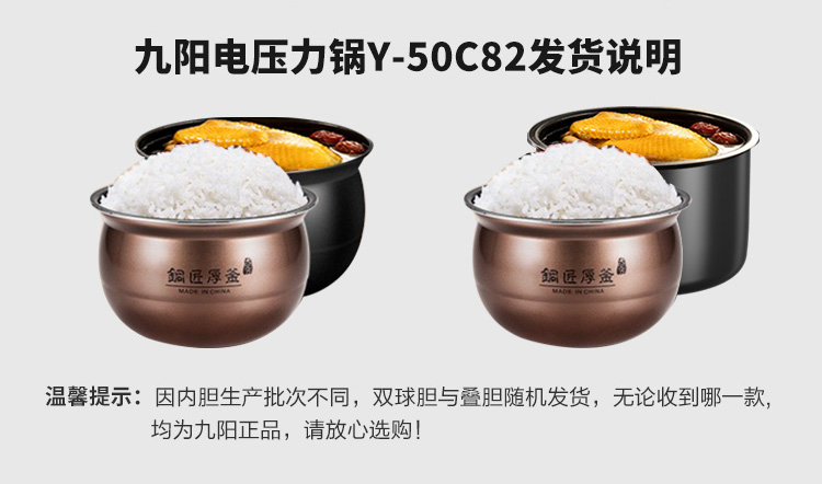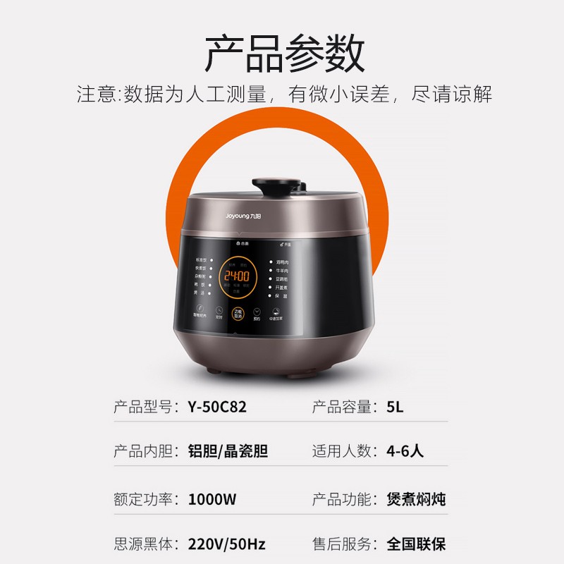 (特)九阳(Joyoung)电压力锅压力煲 5L 铜匠大火 一锅双胆 开盖营养煮 预约定时 电高压锅Y-50C82