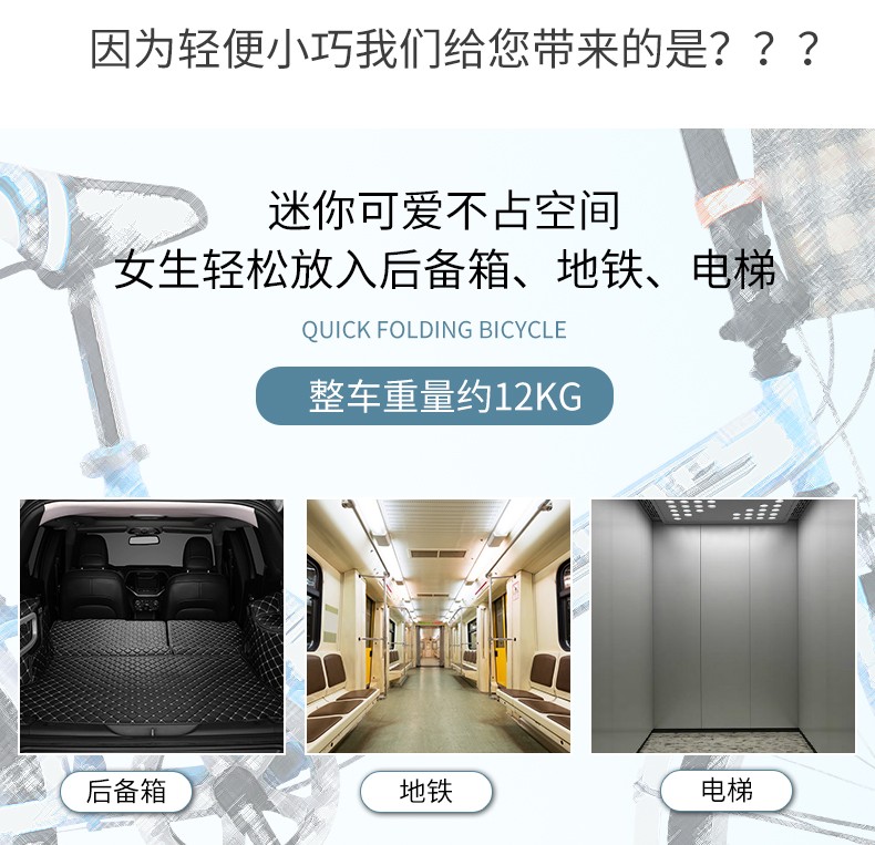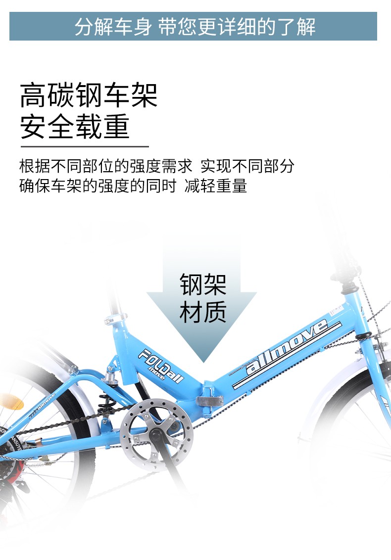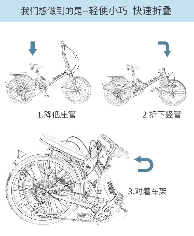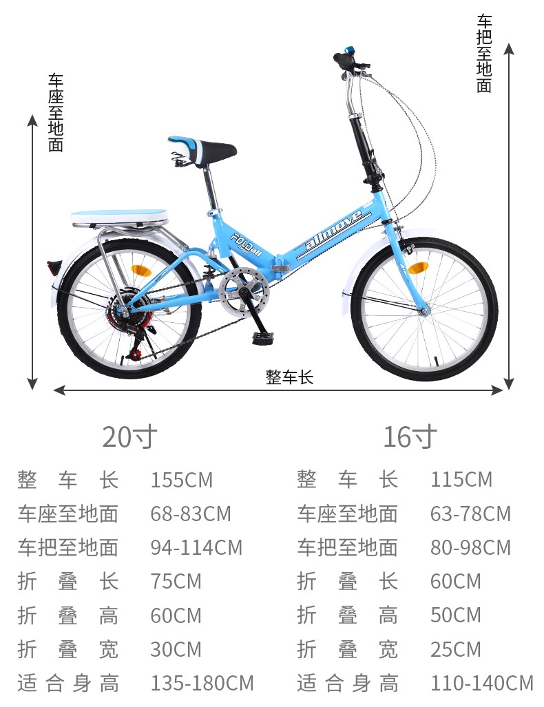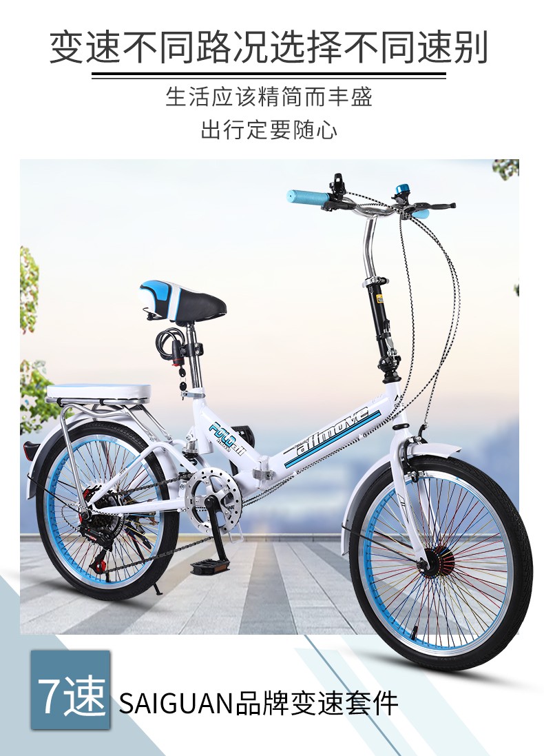 (特)可折叠自行车成人女超轻便携单车小型轮变速20寸