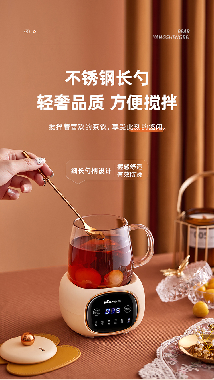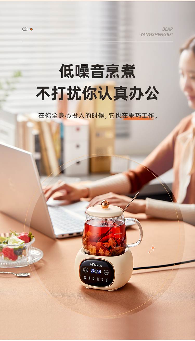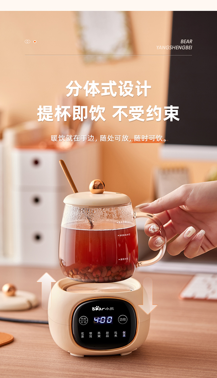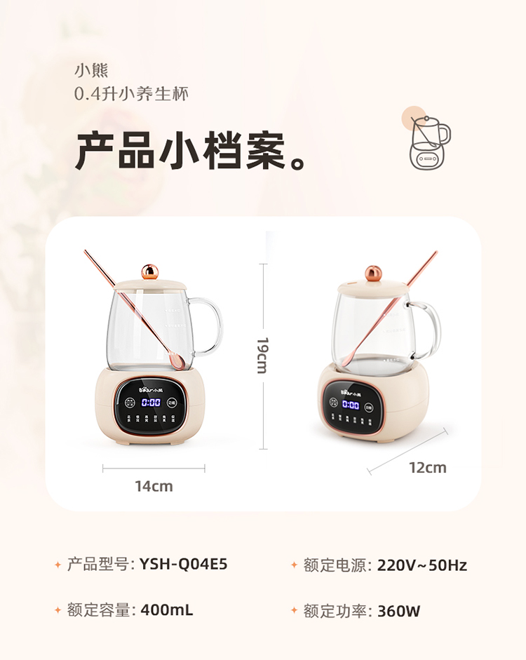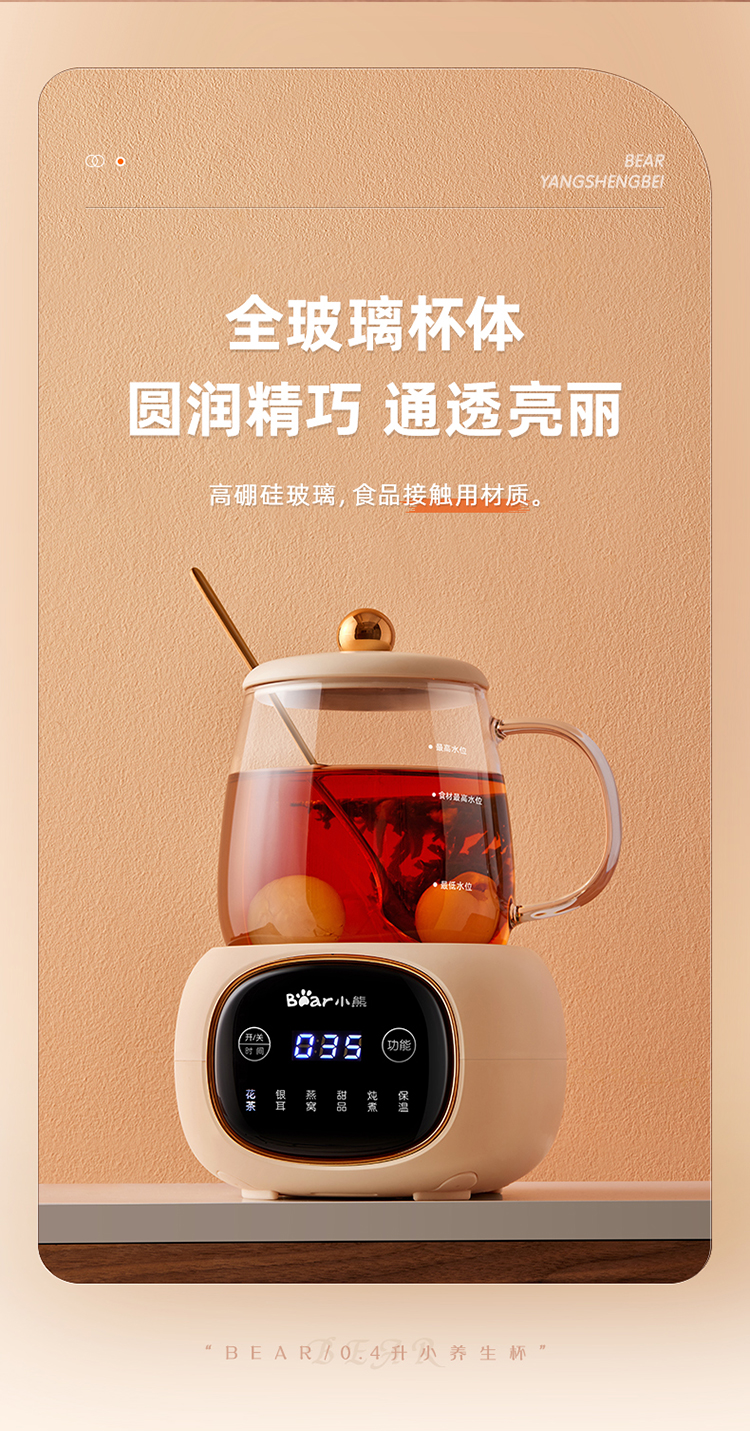 (特)小熊(Bear)迷你养生壶养生杯 电炖杯电热杯煮花茶壶烧水壶办公室杯子0.4L全玻璃杯体YSH-Q04E5